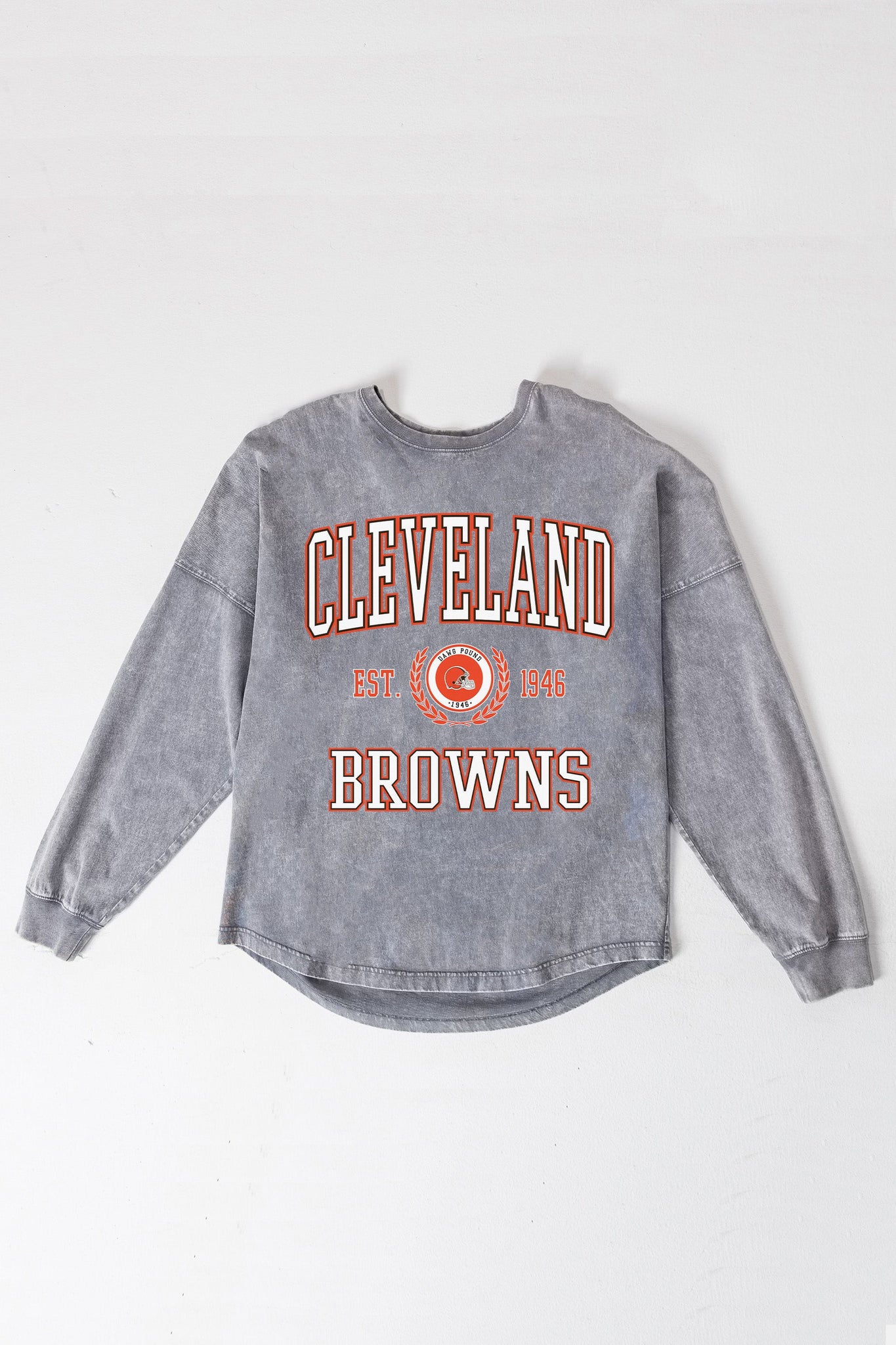 Show your team spirit with our Cleveland Browns faded wash pullover. This oversized long sleeve snow wash tee is a versatile addition to any wardrobe. Crafted from 100% cotton, it promises a soft touch and lasting durability. Show your support with this fashionable and functional piece.