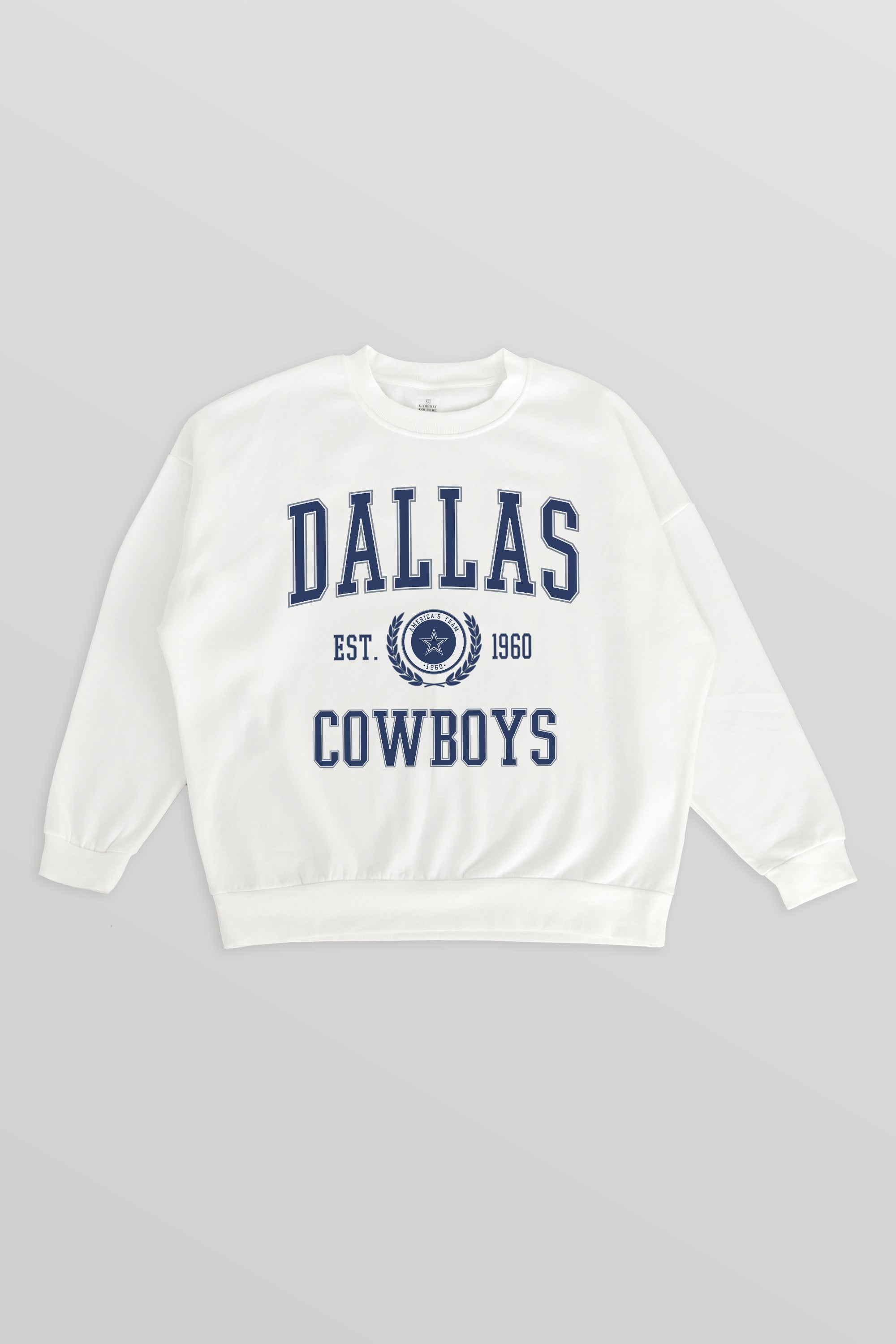 Stand out from the crowd in our Dallas Cowboys premium fleece long sleeve sweatshirt. Boasting an oversized fit, crewneck and ribbed knit neckline, wrists, and waistband, it effortlessly blends comfort with fashion. Show your support for your favorite school or team in this irresistibly soft sweatshirt.