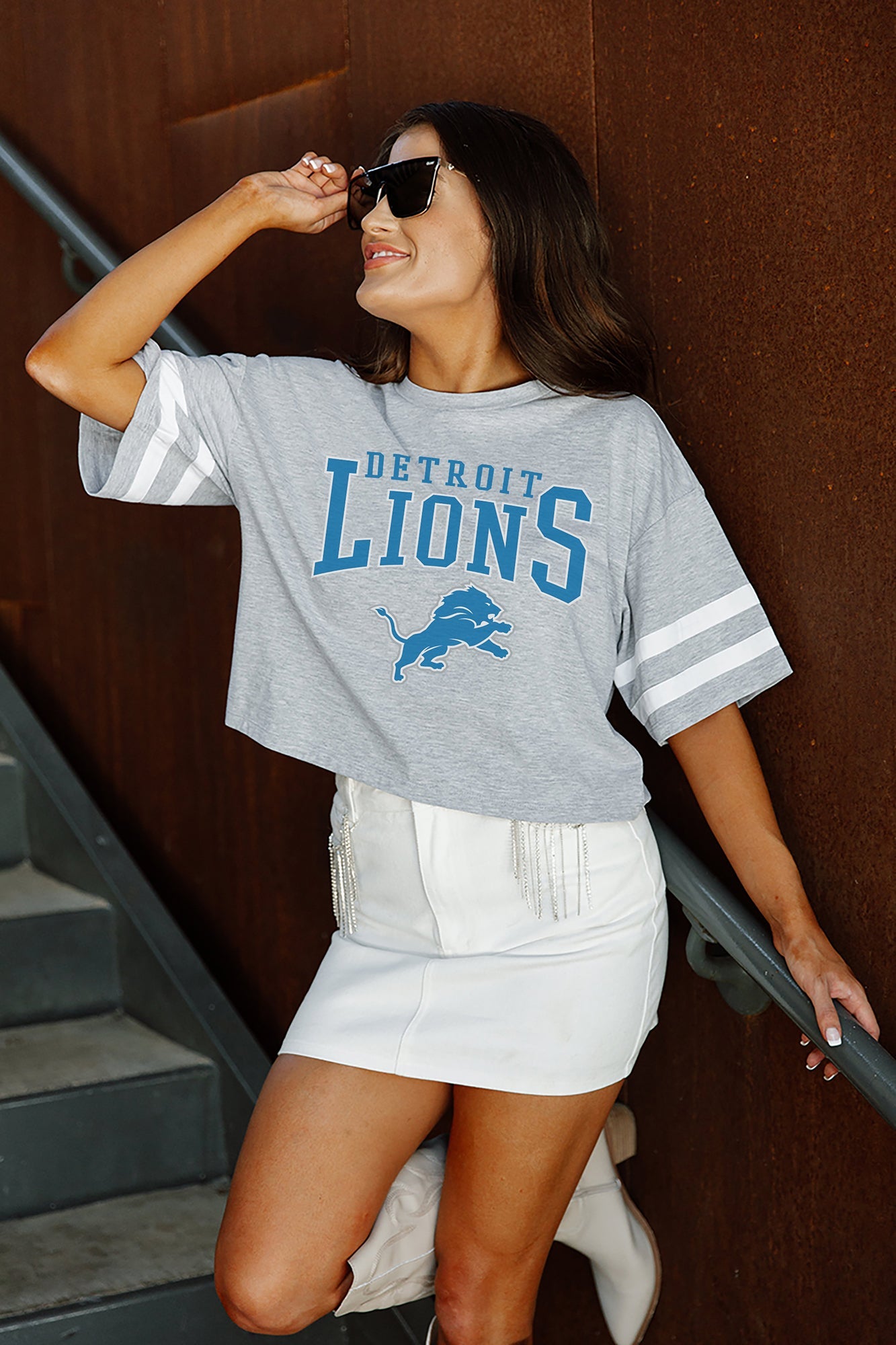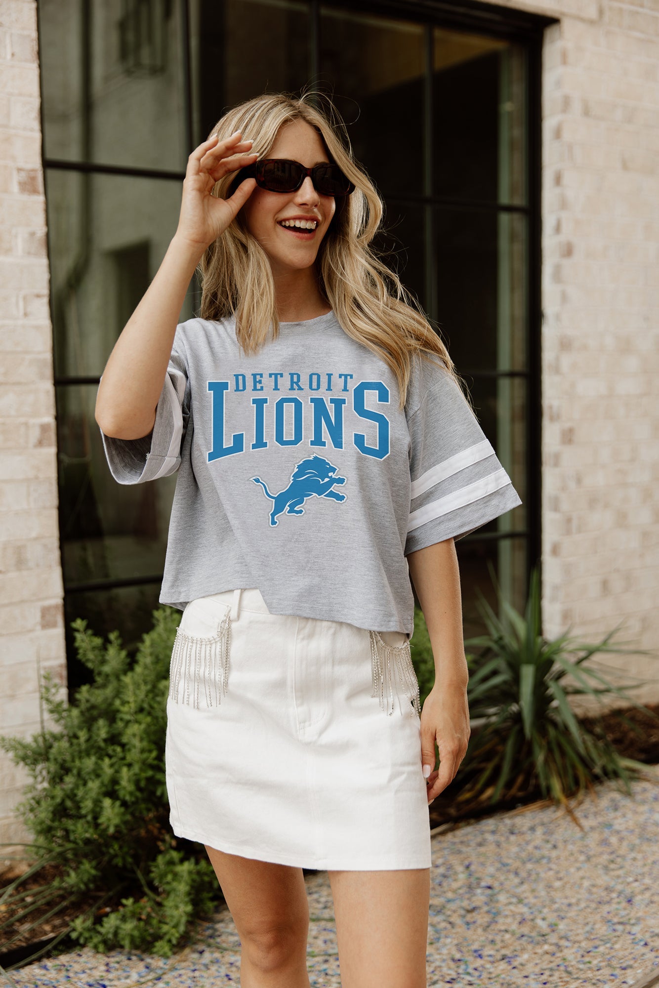 DETROIT LIONS Gridiron Glam Crop Tee With Striped Detail