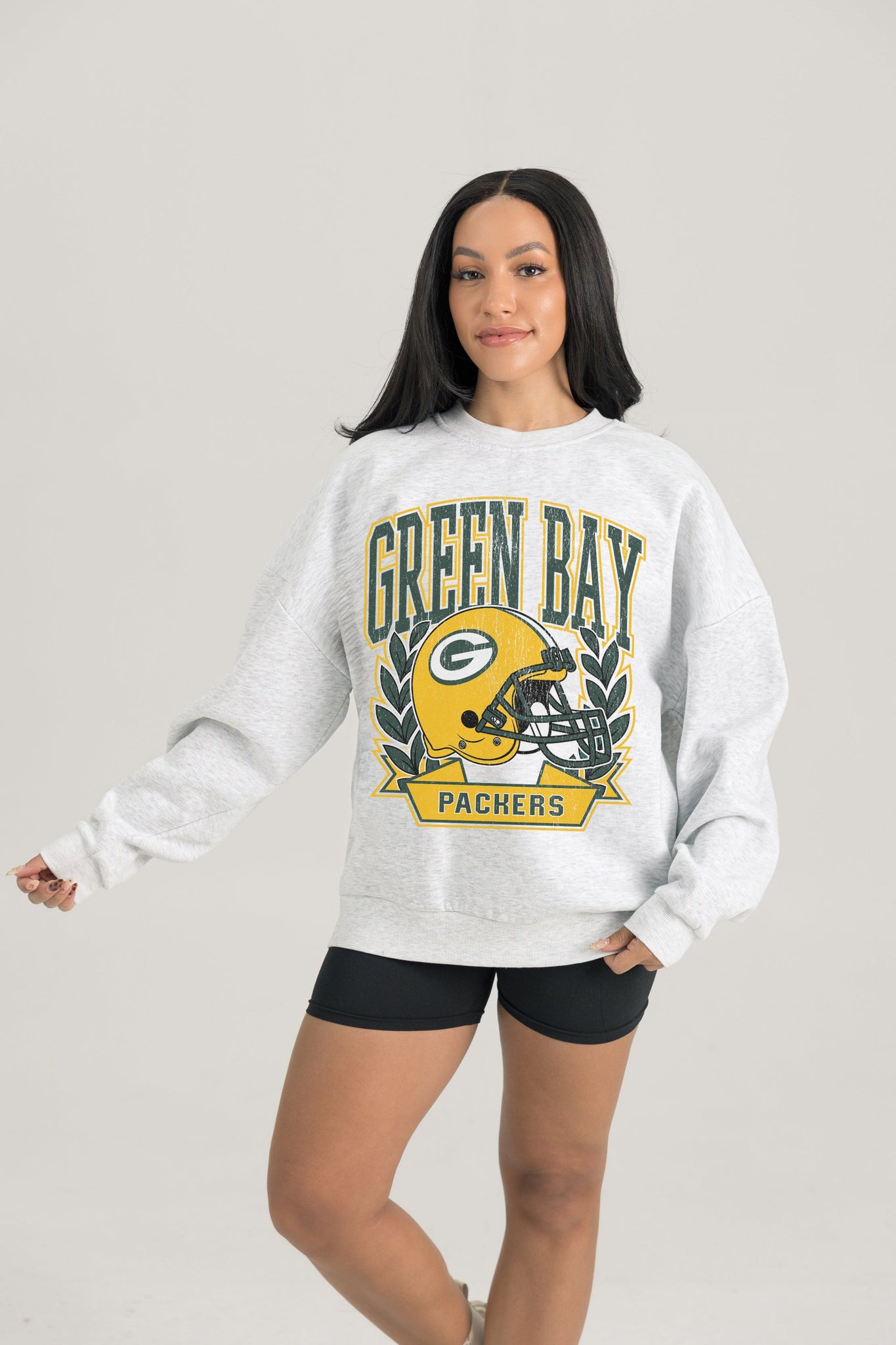 Stand out from the crowd in our Green Bay Packers premium fleece long sleeve sweatshirt. Boasting an oversized fit, crewneck and ribbed knit neckline, wrists, and waistband, it effortlessly blends comfort with fashion. Show your support for your favorite school or team in this irresistibly soft sweatshirt.