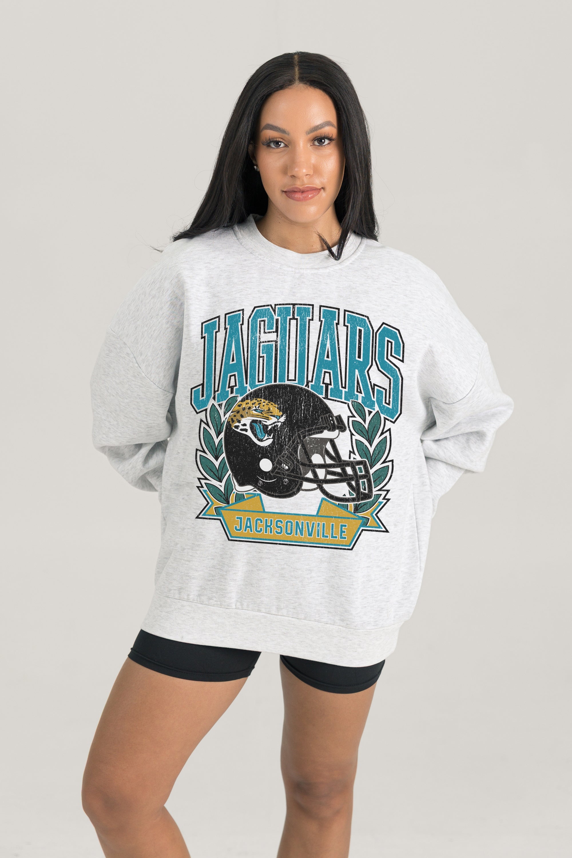 Stand out from the crowd in our Jacksonville Jaguars premium fleece long sleeve sweatshirt. Boasting an oversized fit, crewneck and ribbed knit neckline, wrists, and waistband, it effortlessly blends comfort with fashion. Show your support for your favorite school or team in this irresistibly soft sweatshirt.
