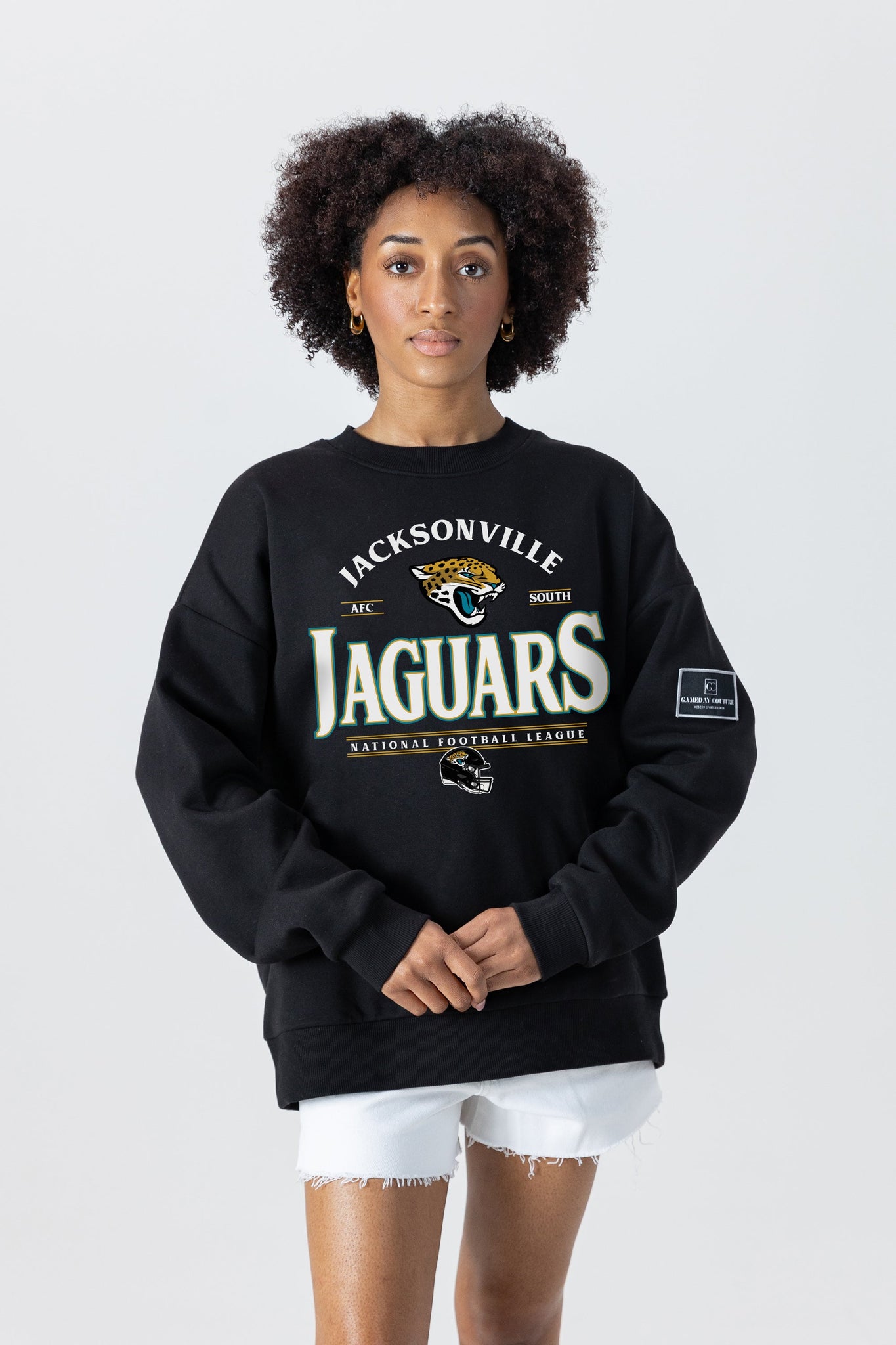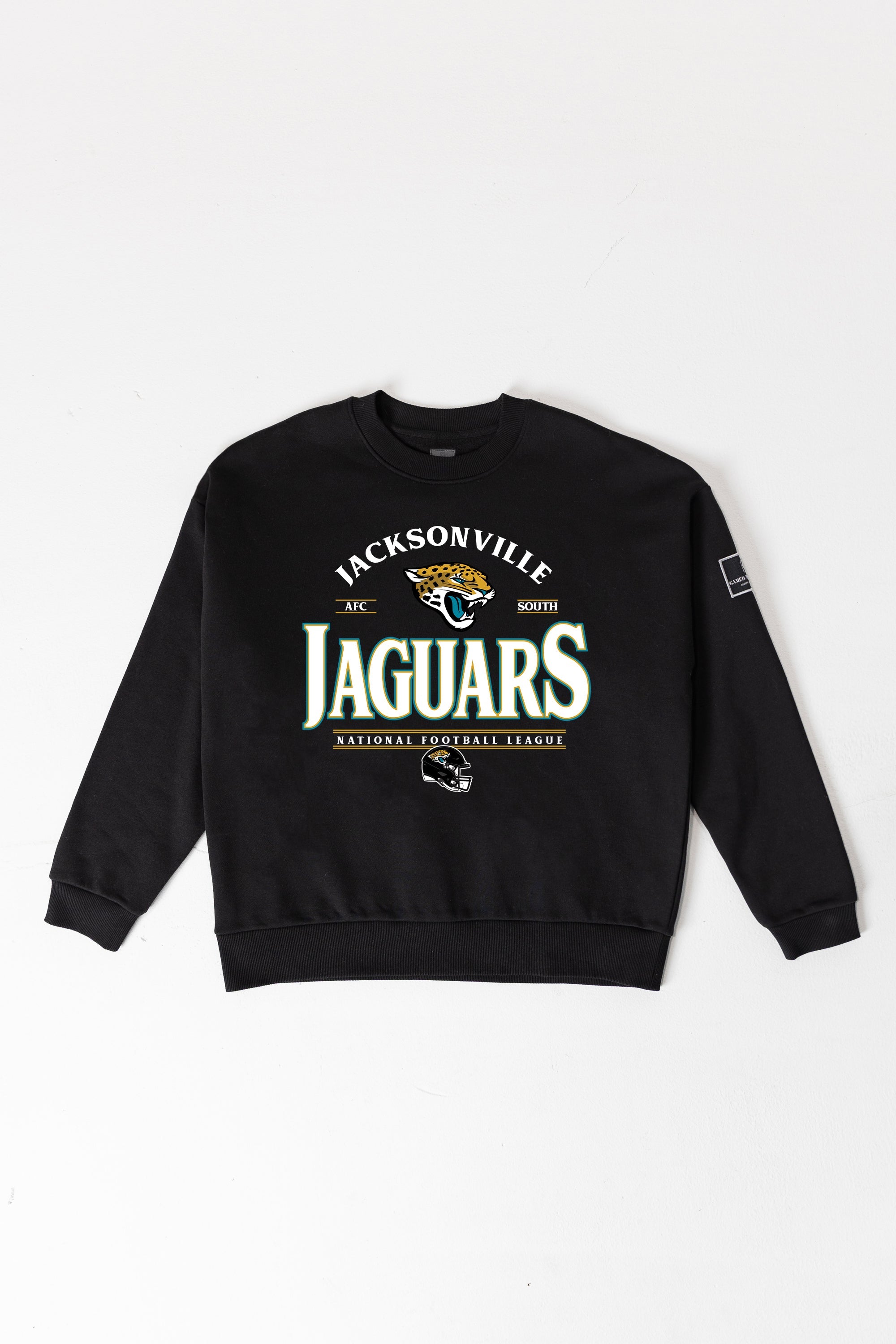 Get ready to cheer on your Jacksonville Jaguars with our black label premium fleece drop-shoulder crewneck with ribbed knit neckline, cuffs, and waistband. From the game to the everyday, this is your go-to choice.