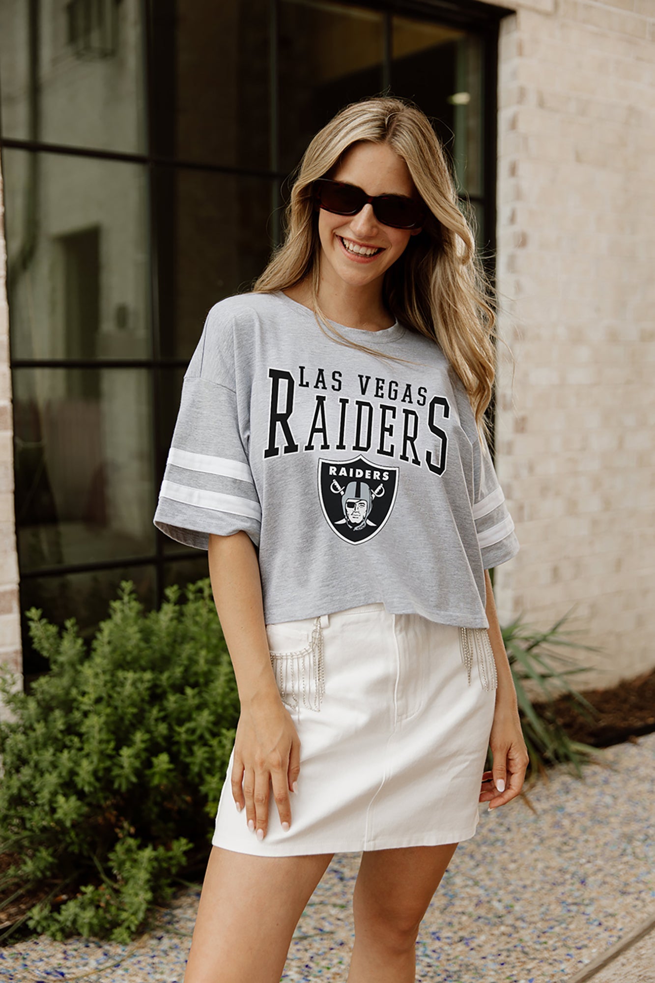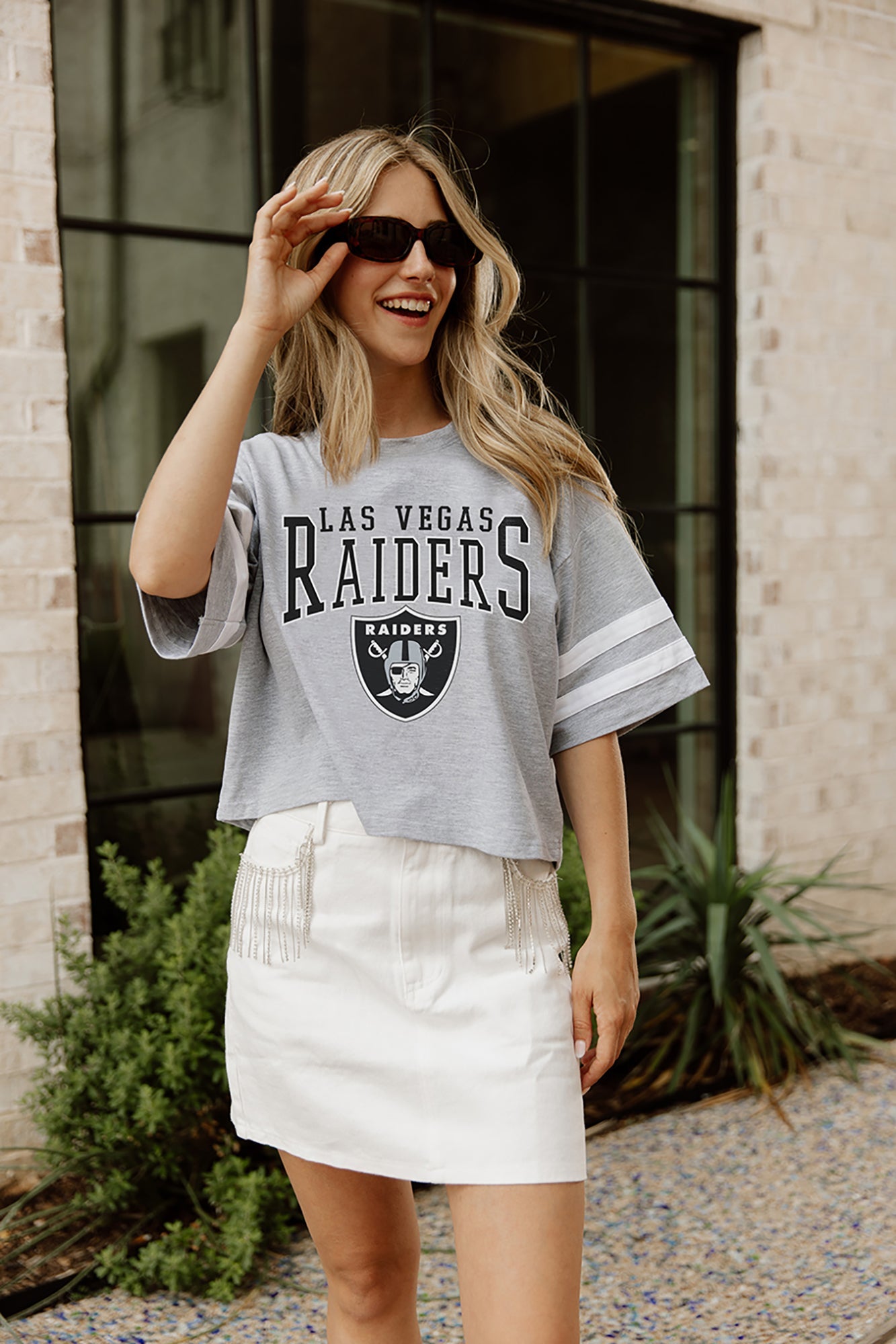 LAS VEGAS RAIDERS Gridiron Glam Crop Tee With Striped Detail