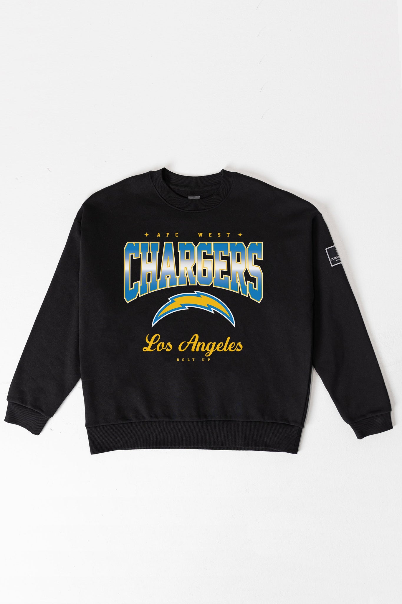 LOS ANGELES CHARGERS POWERHOUSE PLAY BLACK LABEL PREMIUM FLEECE CREW SWEATSHIRT