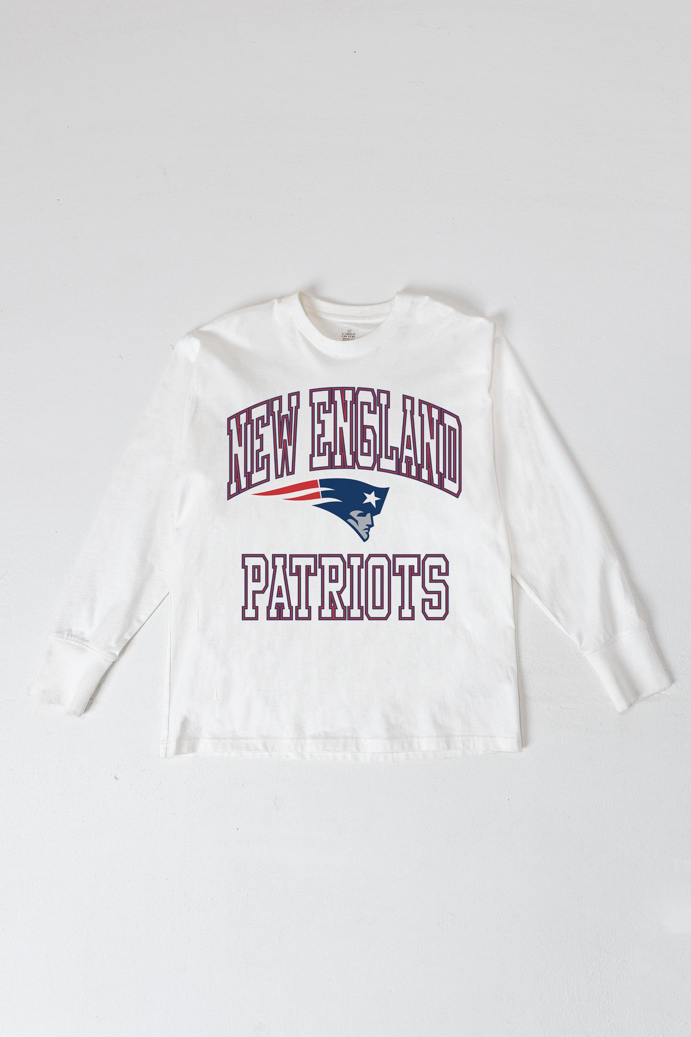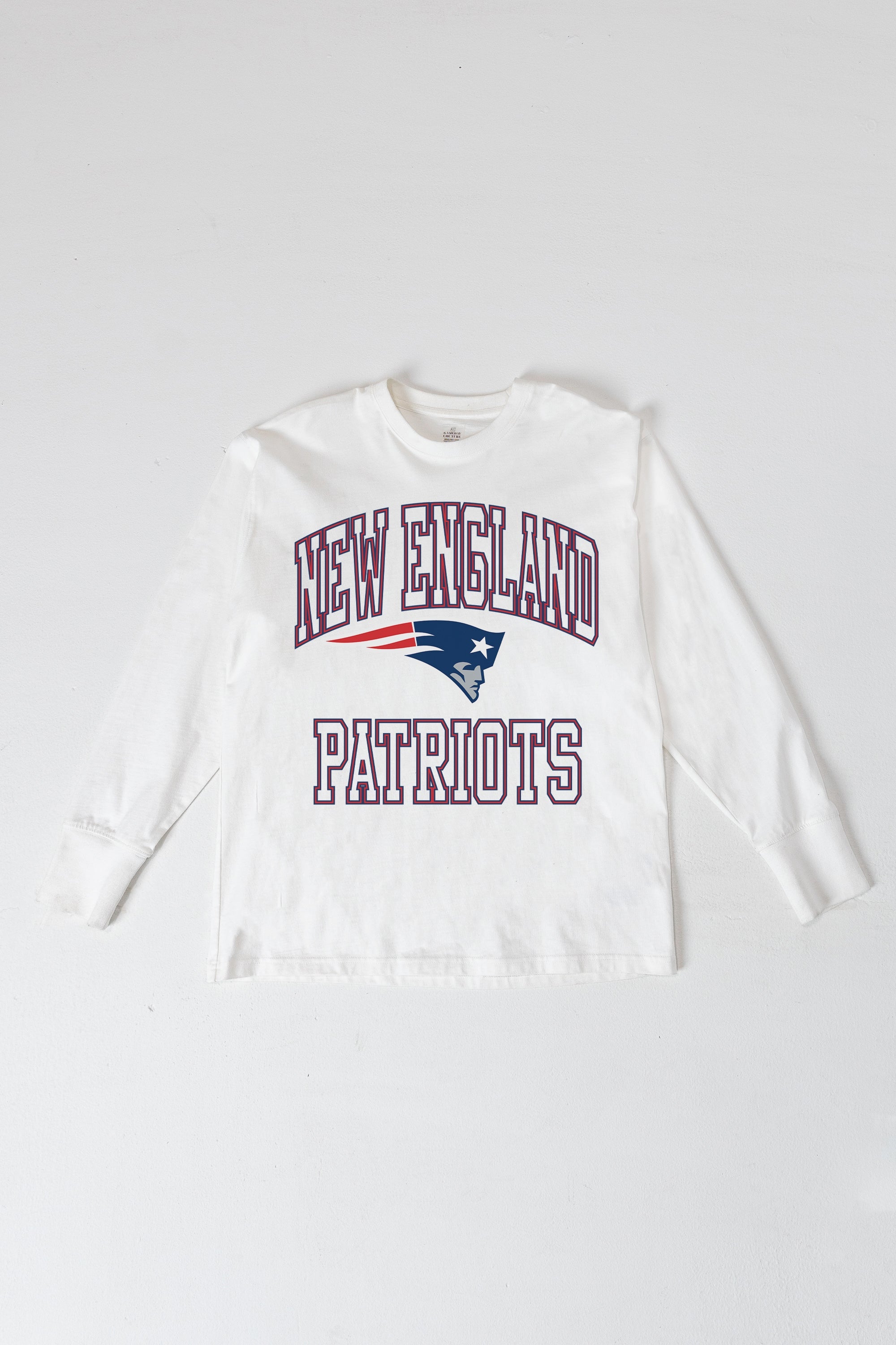 Bring the energy of the game to your wardrobe with our New England Patriots oversized long sleeve tee with ribbed neckline and cuffs. Showing off your New England Patriots spirit will be a breeze.