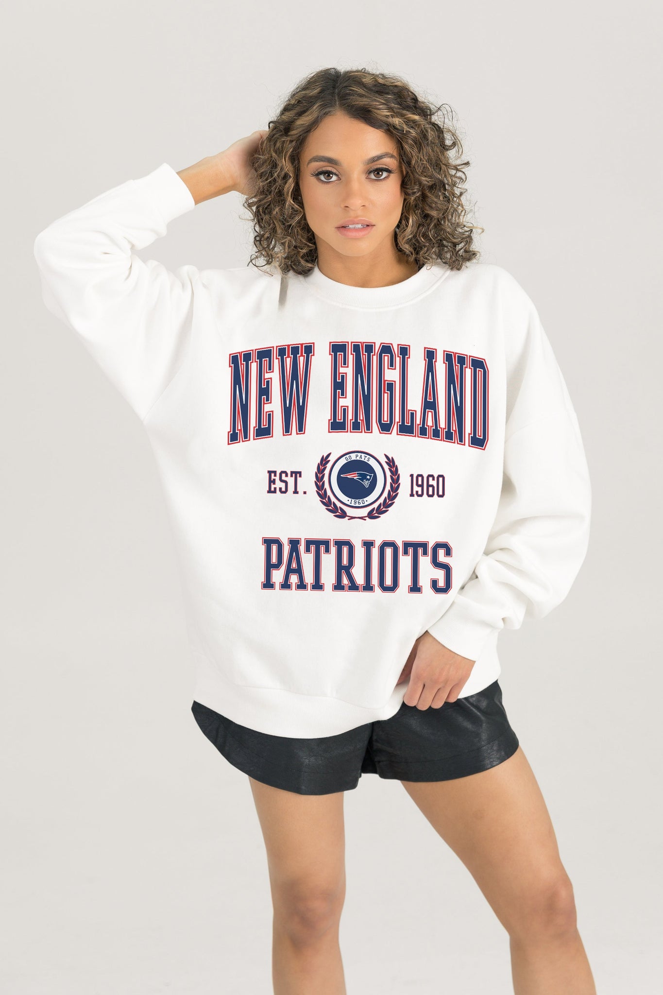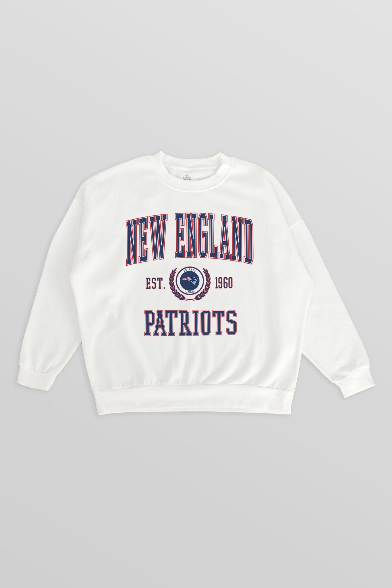 Stand out from the crowd in our New England Patriots premium fleece long sleeve sweatshirt. Boasting an oversized fit, crewneck and ribbed knit neckline, wrists, and waistband, it effortlessly blends comfort with fashion. Show your support for your favorite school or team in this irresistibly soft sweatshirt.