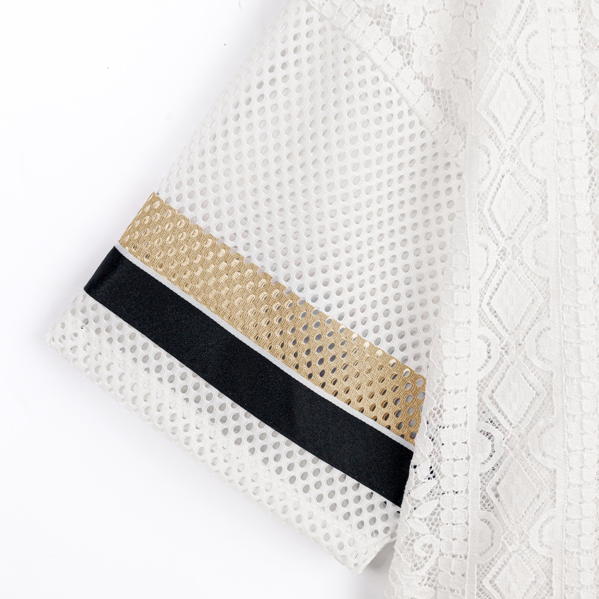 Bold, breathable, and completely unexpected, this lace fashion top is a total scene-stealer. Featuring a full lace body, satin and embroidered team graphics, and printed sport stripes, it’s a glam-meets-game-day statement piece made to rep New Orleans Saints your way.