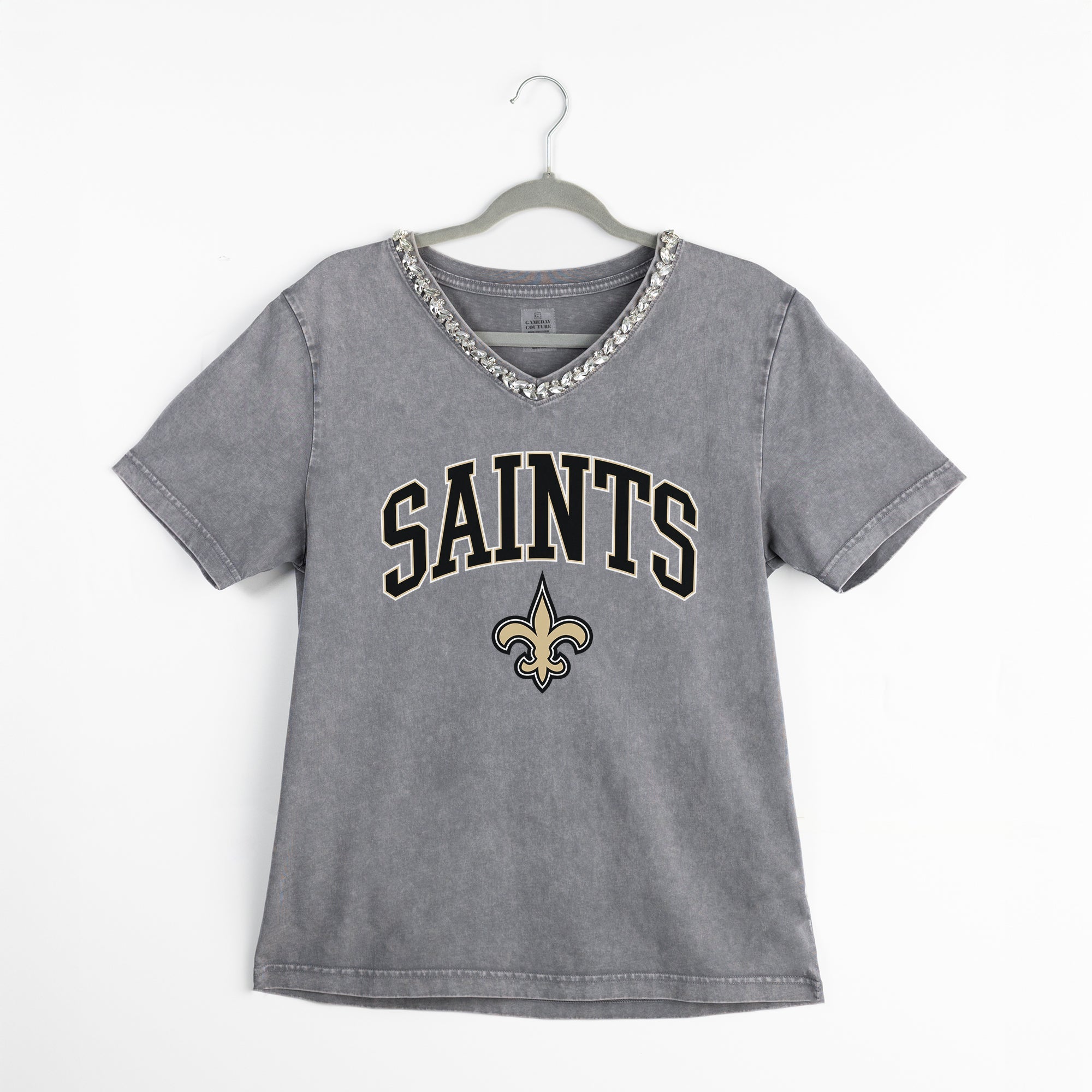 Hi Dawn! Thank you so much for taking the time to share your honest feedback on our Buffalo Bills Iconic Edge Rhinestone Trim V-Neck Tee! I'm so glad to hear that you love the bling — that rhinestone trim really does make it special! ✨