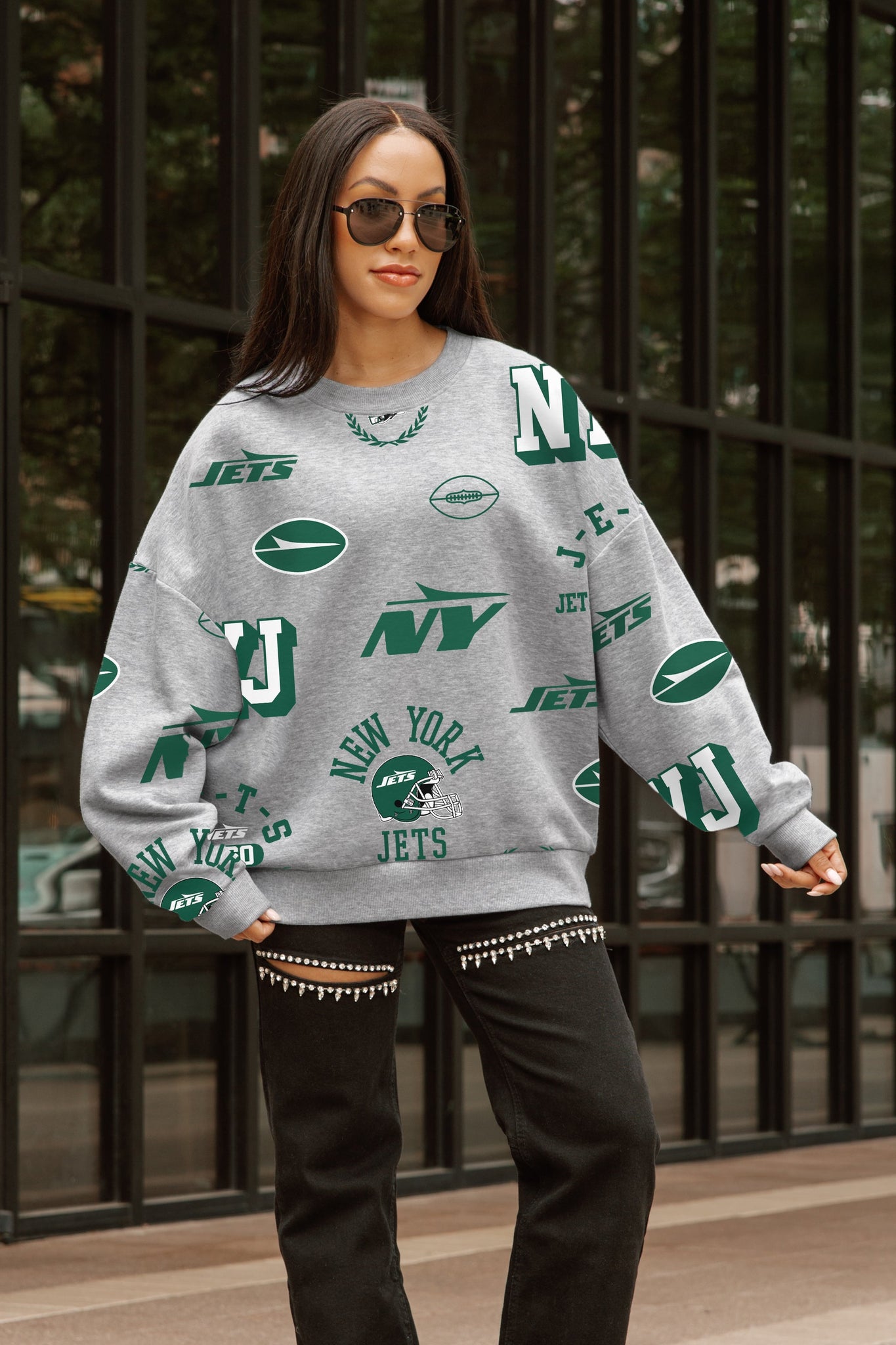 Show off your team spirit in style with this premium fleece sweatshirt featuring an eye-catching allover print of mixed New York Jets logos and mascots. Designed with a relaxed fit and drop shoulders for that effortlessly cool, oversized look, this fan-favorite sweatshirt combines comfort and team pride. Whether you're heading to the game, running errands, or lounging at home, this officially licensed piece is the perfect blend of cozy and spirited—made to be worn on repeat.