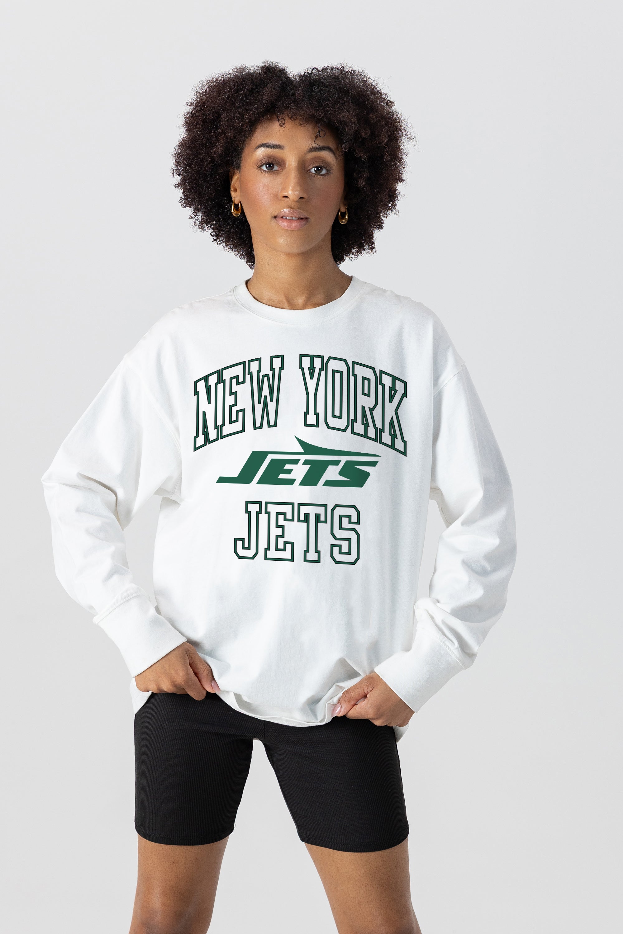 Bring the energy of the game to your wardrobe with our New York Jets oversized long sleeve tee with ribbed neckline and cuffs. Showing off your New York Jets spirit will be a breeze.