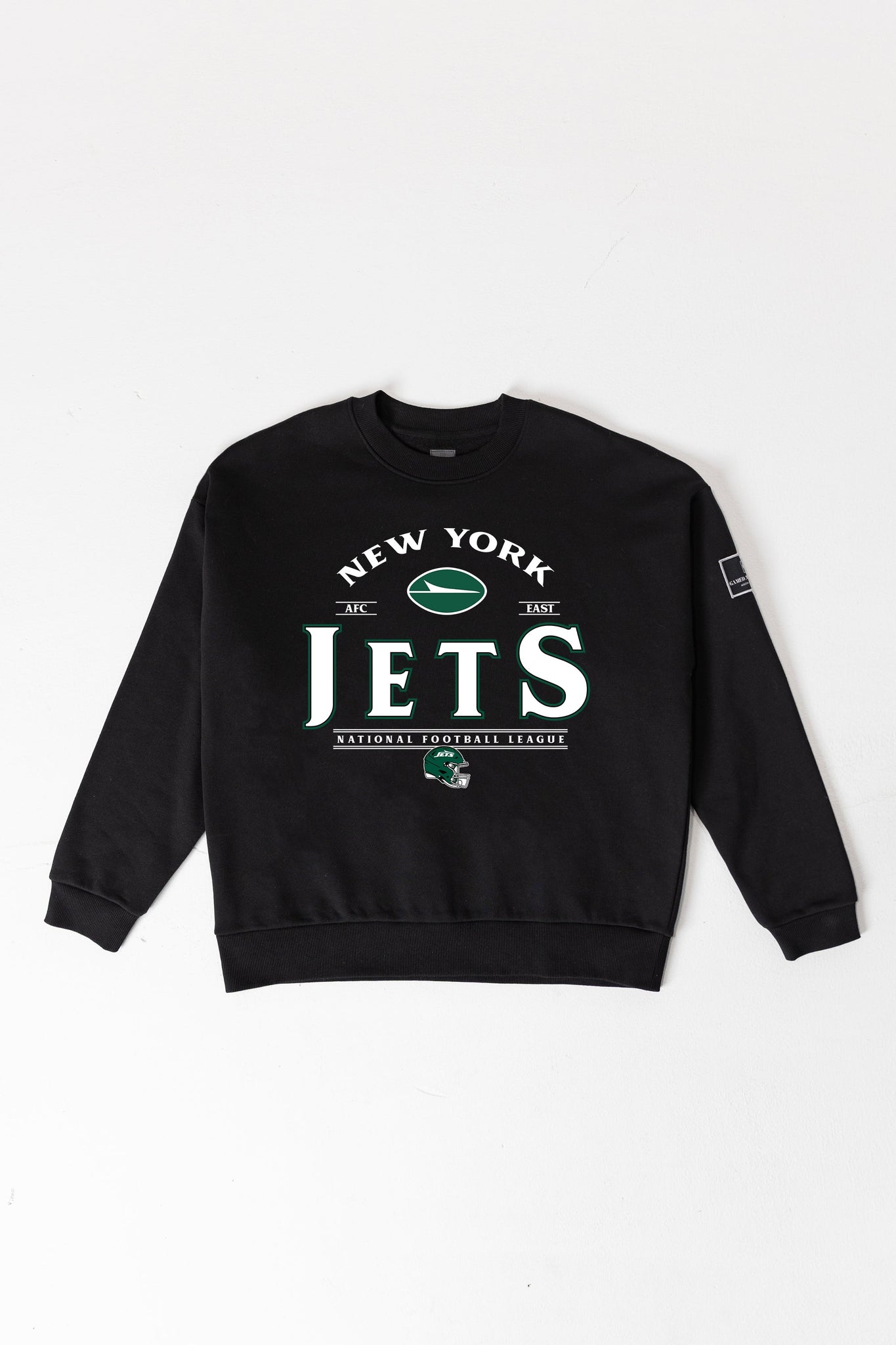 Get ready to cheer on your New York Jets with our black label premium fleece drop-shoulder crewneck with ribbed knit neckline, cuffs, and waistband. From the game to the everyday, this is your go-to choice.