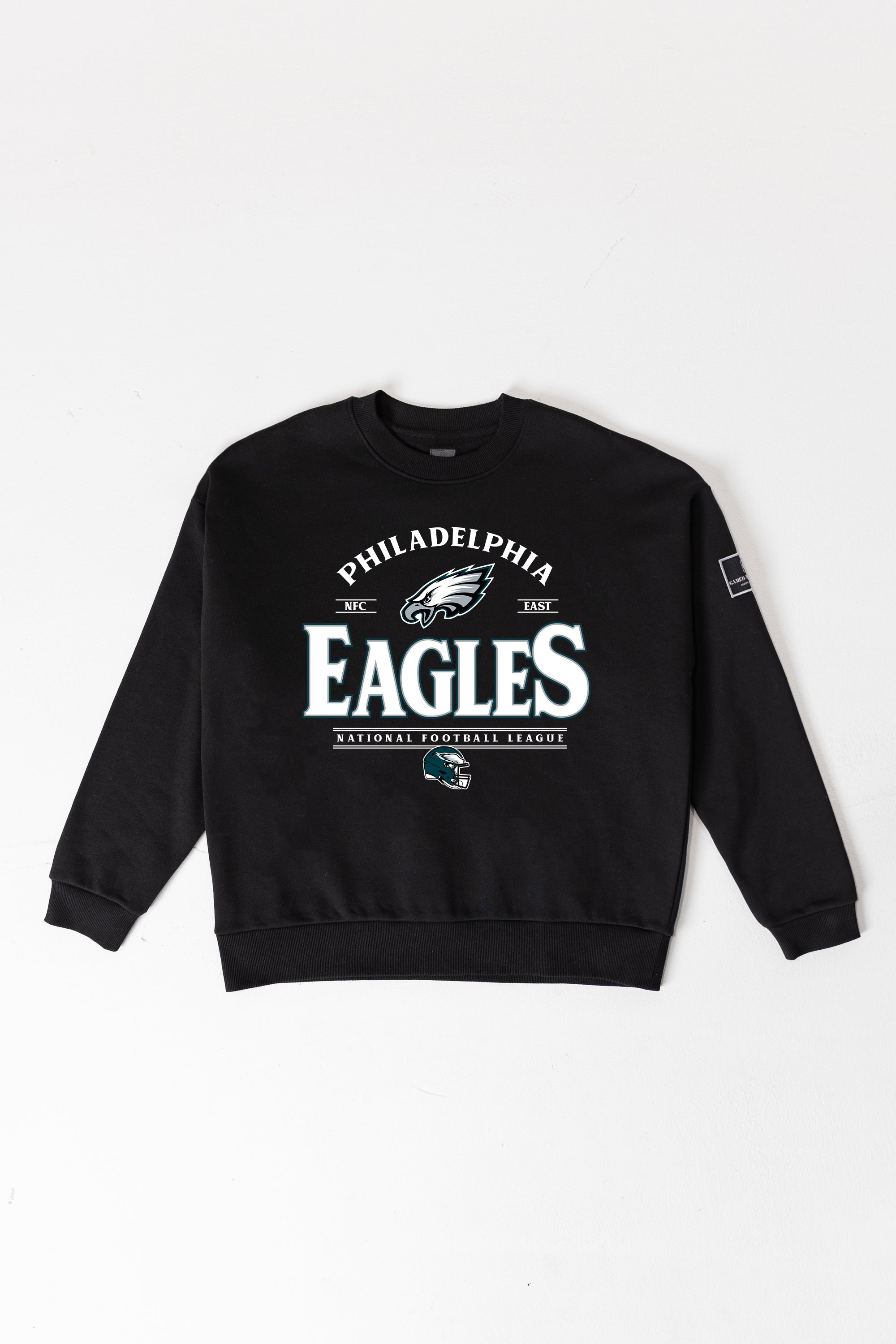 Get ready to cheer on your Philadelphia Eagles with our black label premium fleece drop-shoulder crewneck with ribbed knit neckline, cuffs, and waistband. From the game to the everyday, this is your go-to choice.