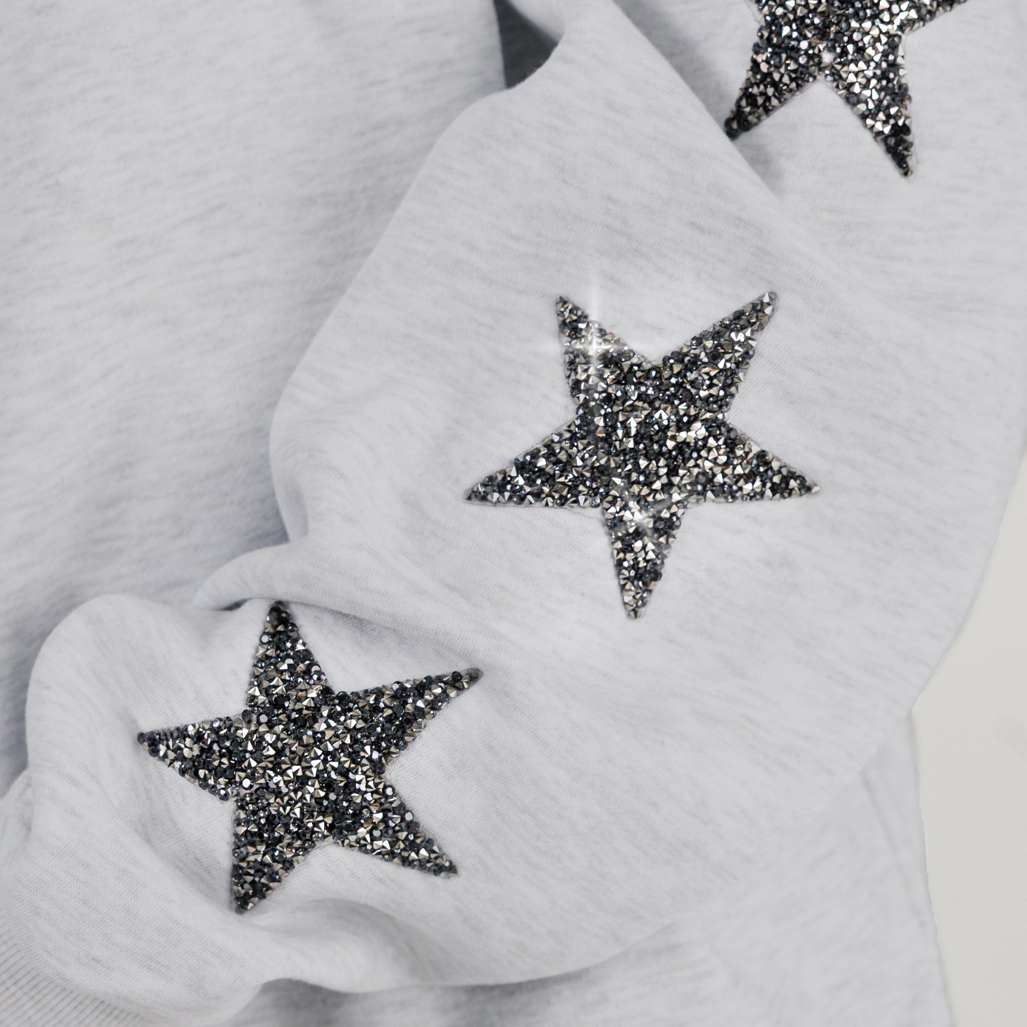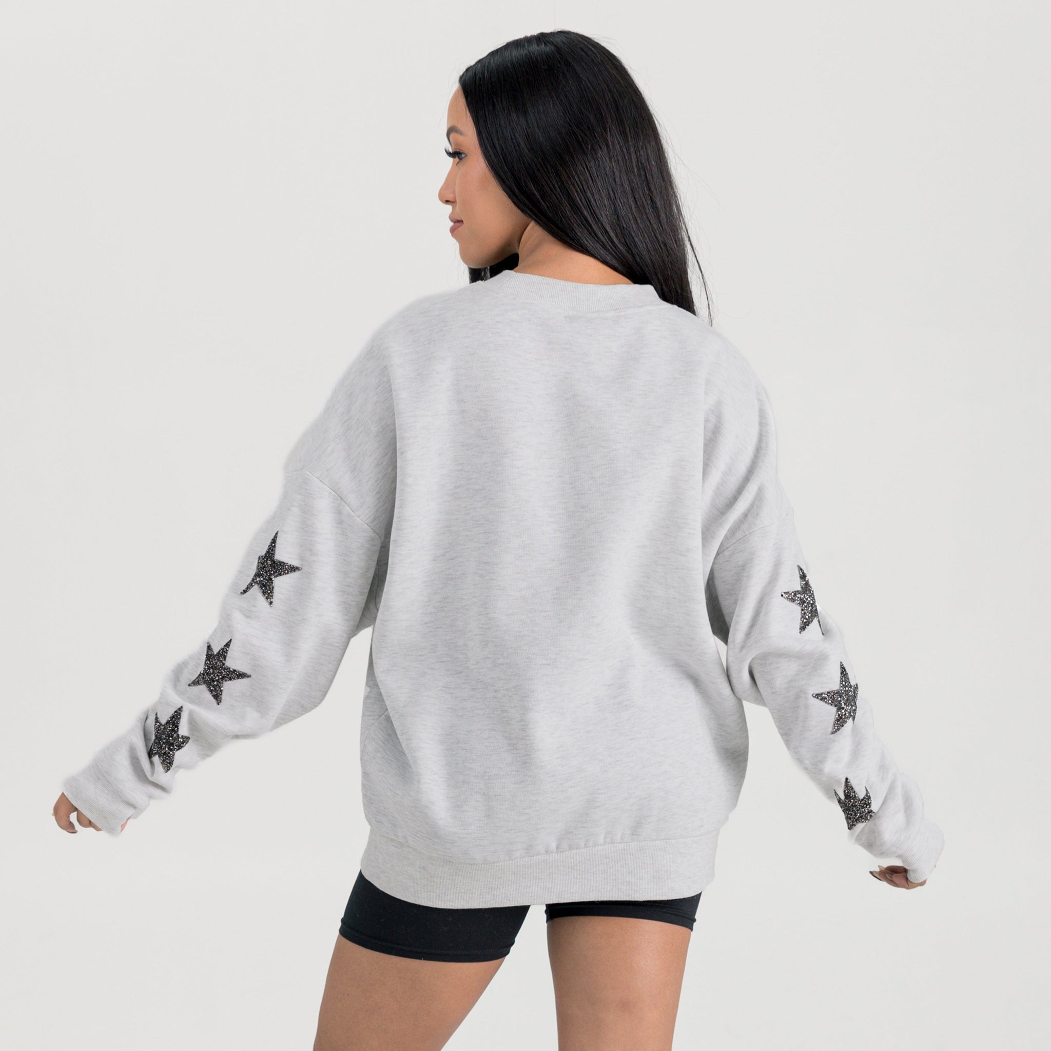 Love this sweatshirt. Slightly oversized for a comfortable fit. Love the embellished stars on the sleeves. Always get compliments every time I wear this crew.