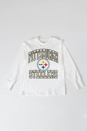 Bring the energy of the game to your wardrobe with our Pittsburgh Steelers oversized long sleeve tee with ribbed neckline and cuffs. Showing off your Pittsburgh Steelers spirit will be a breeze.