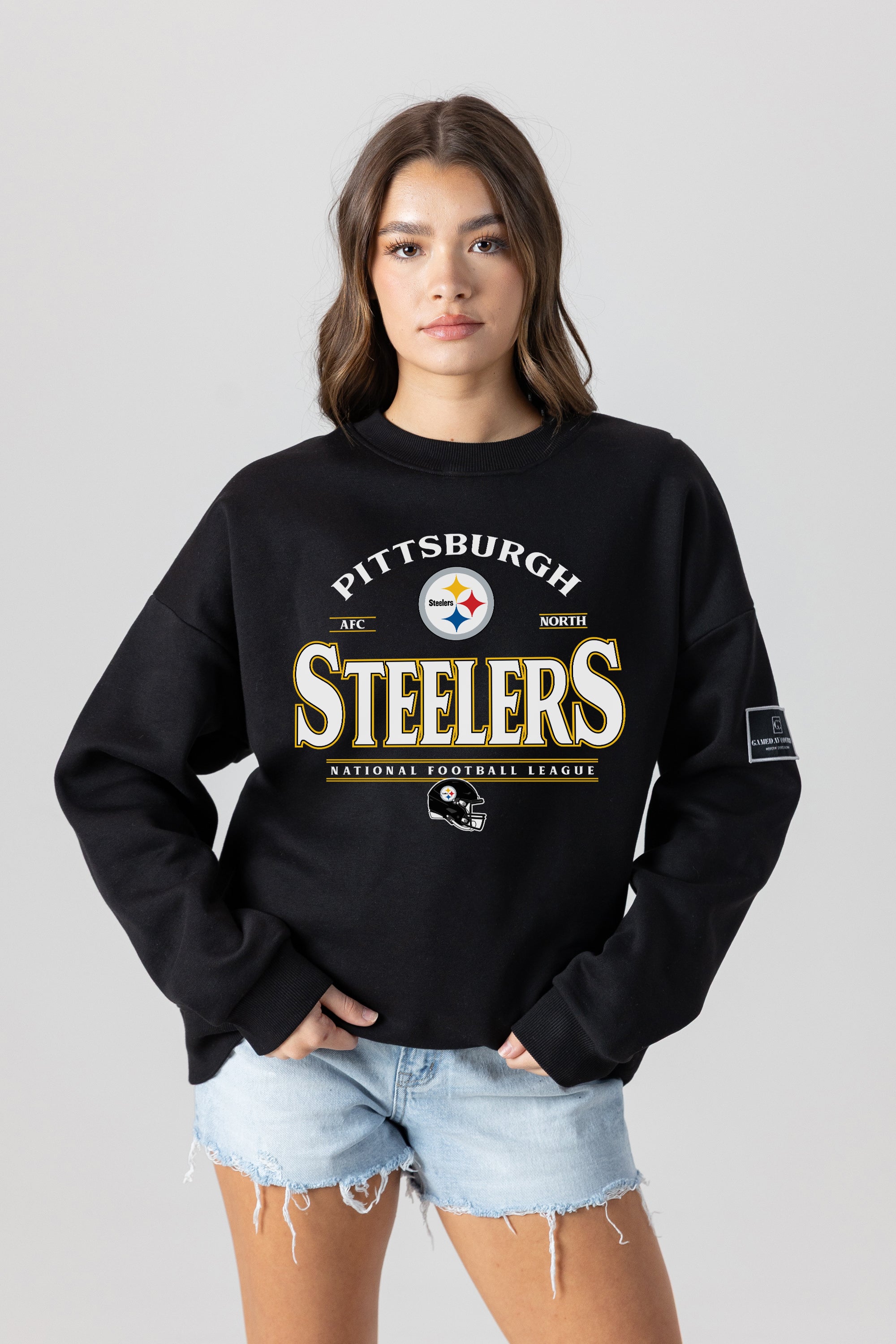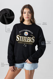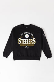 Get ready to cheer on your Pittsburgh Steelers with our black label premium fleece drop-shoulder crewneck with ribbed knit neckline, cuffs, and waistband. From the game to the everyday, this is your go-to choice.