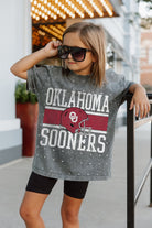 Make a statement in any crowd with our Oklahoma Sooners oversized fit, all-over mini rhinestone short sleeve tee featuring a ribbed neckline. Embrace the sparkle while staying comfortable—perfect for every dedicated fan.