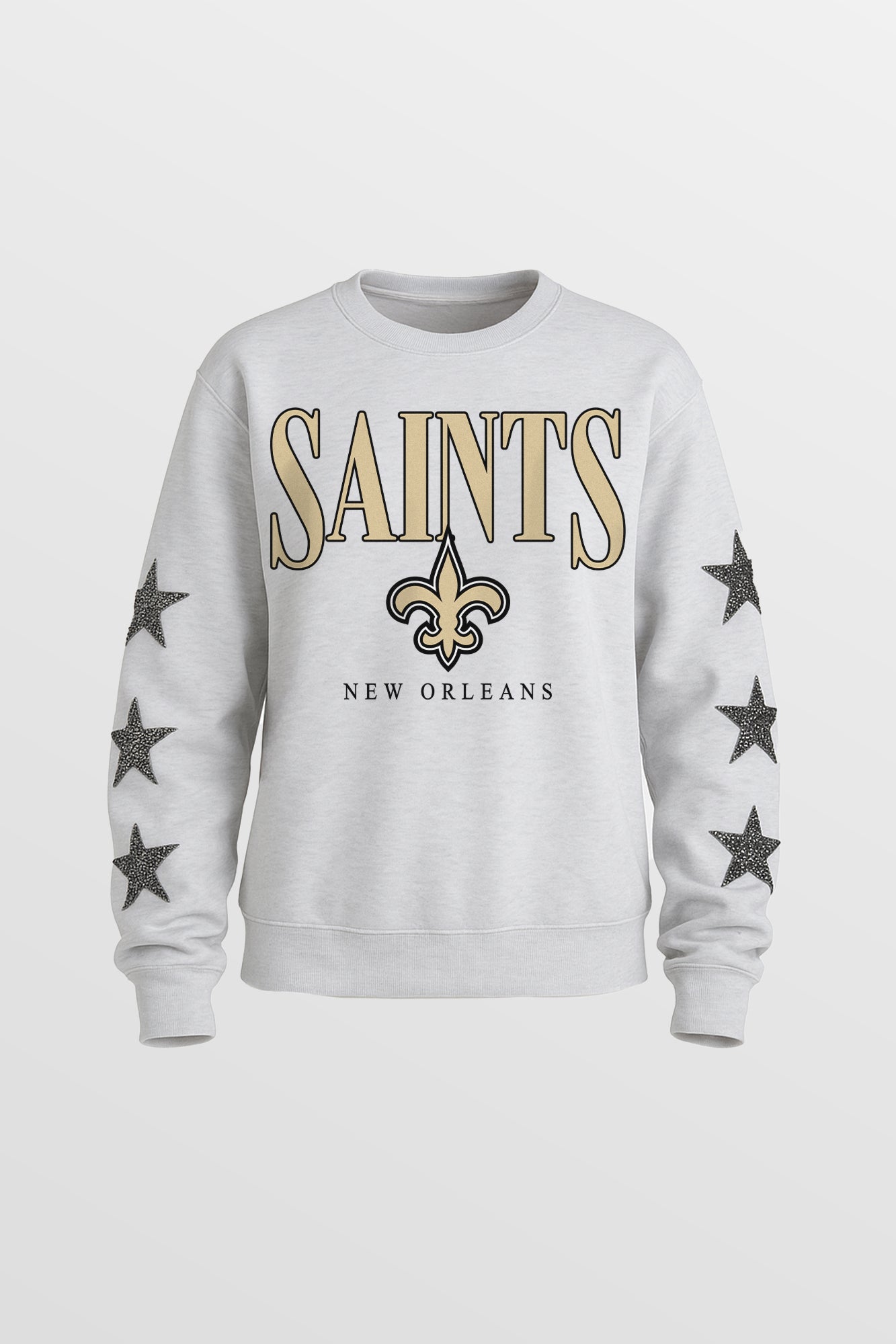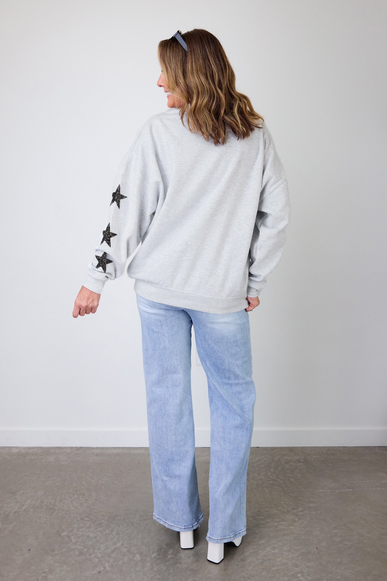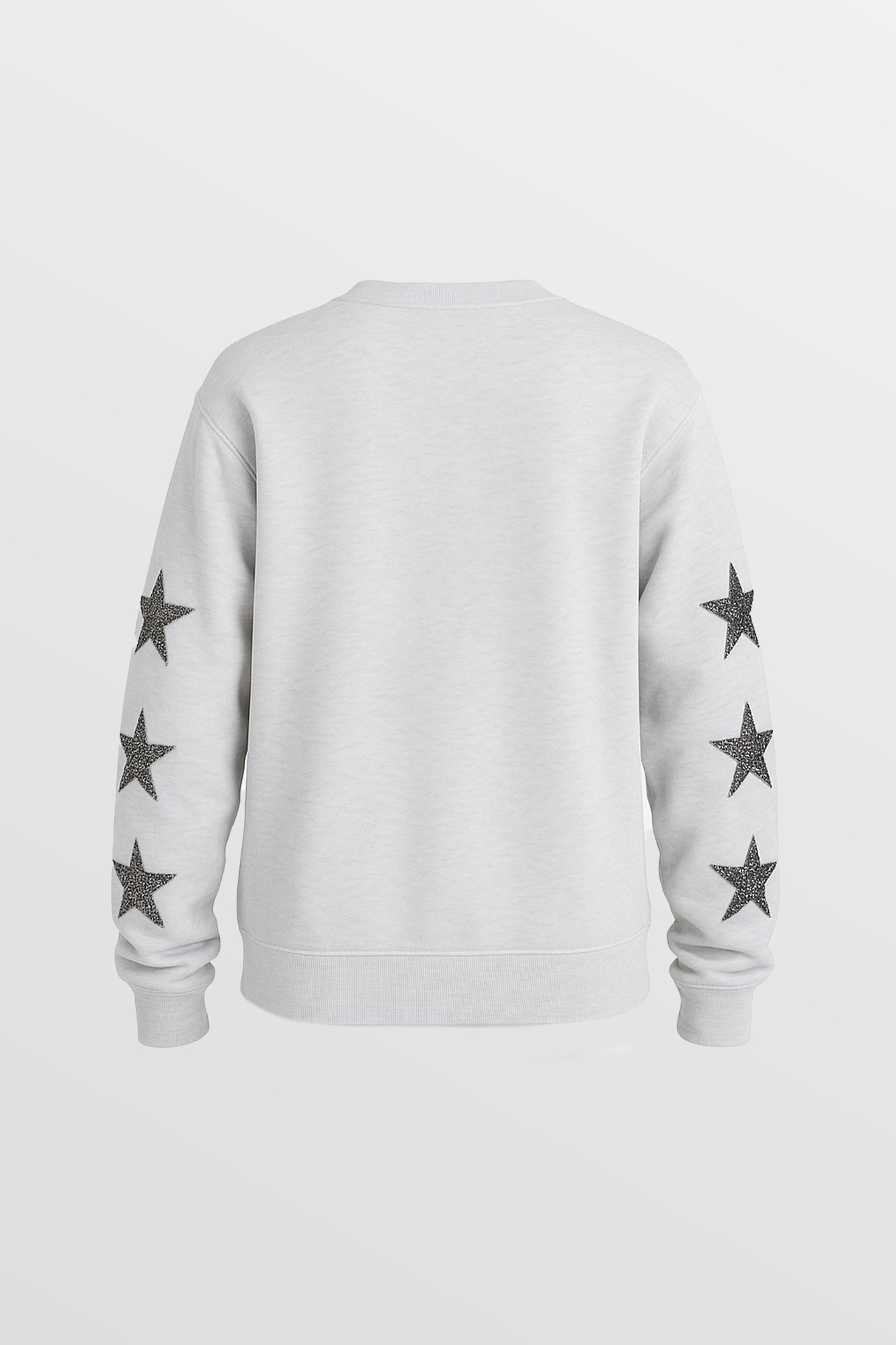 This sweatshirt is adorable. It is oversized and has some bling in the stars on the arms. I love it. Soft inside ♡