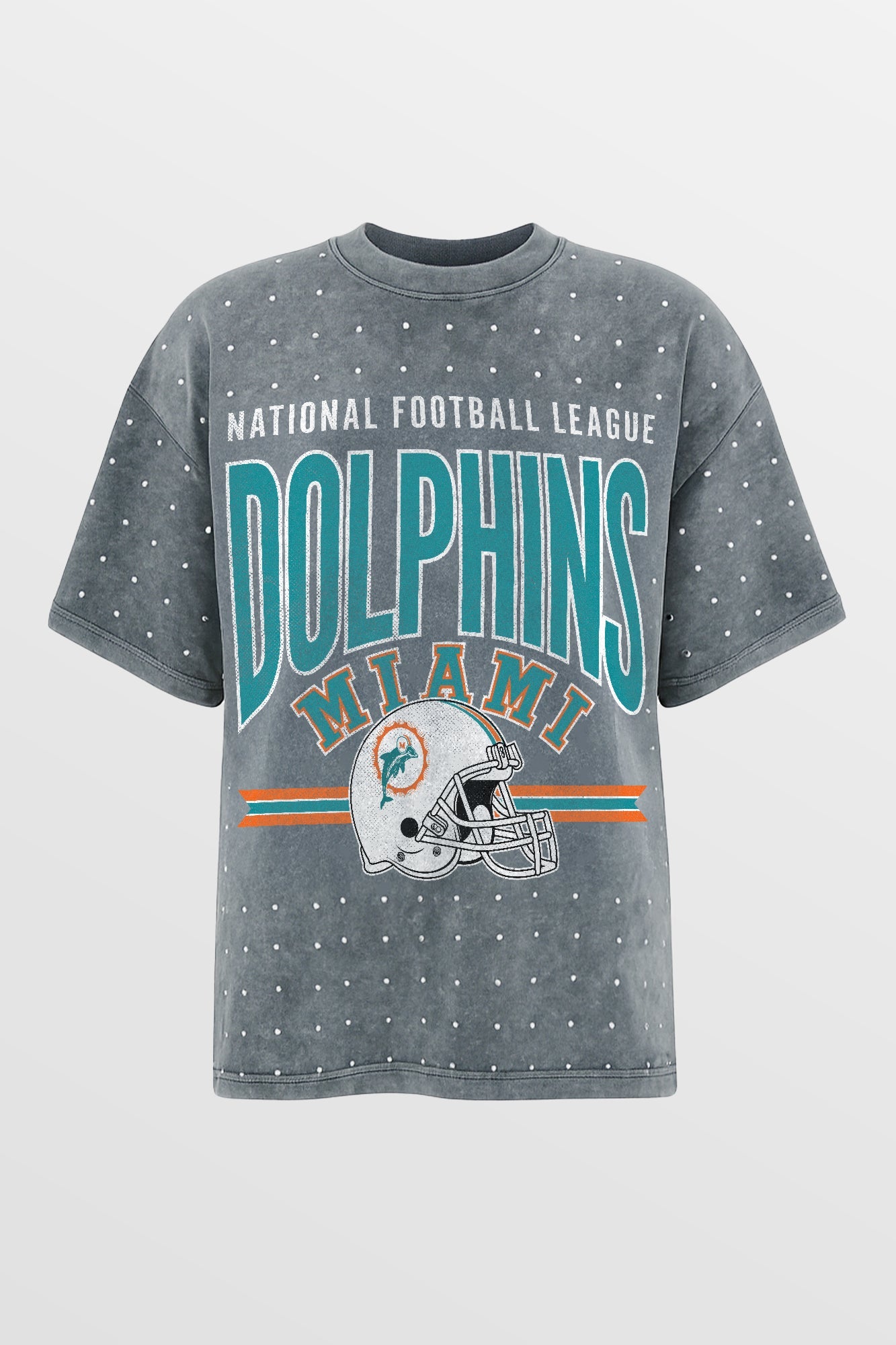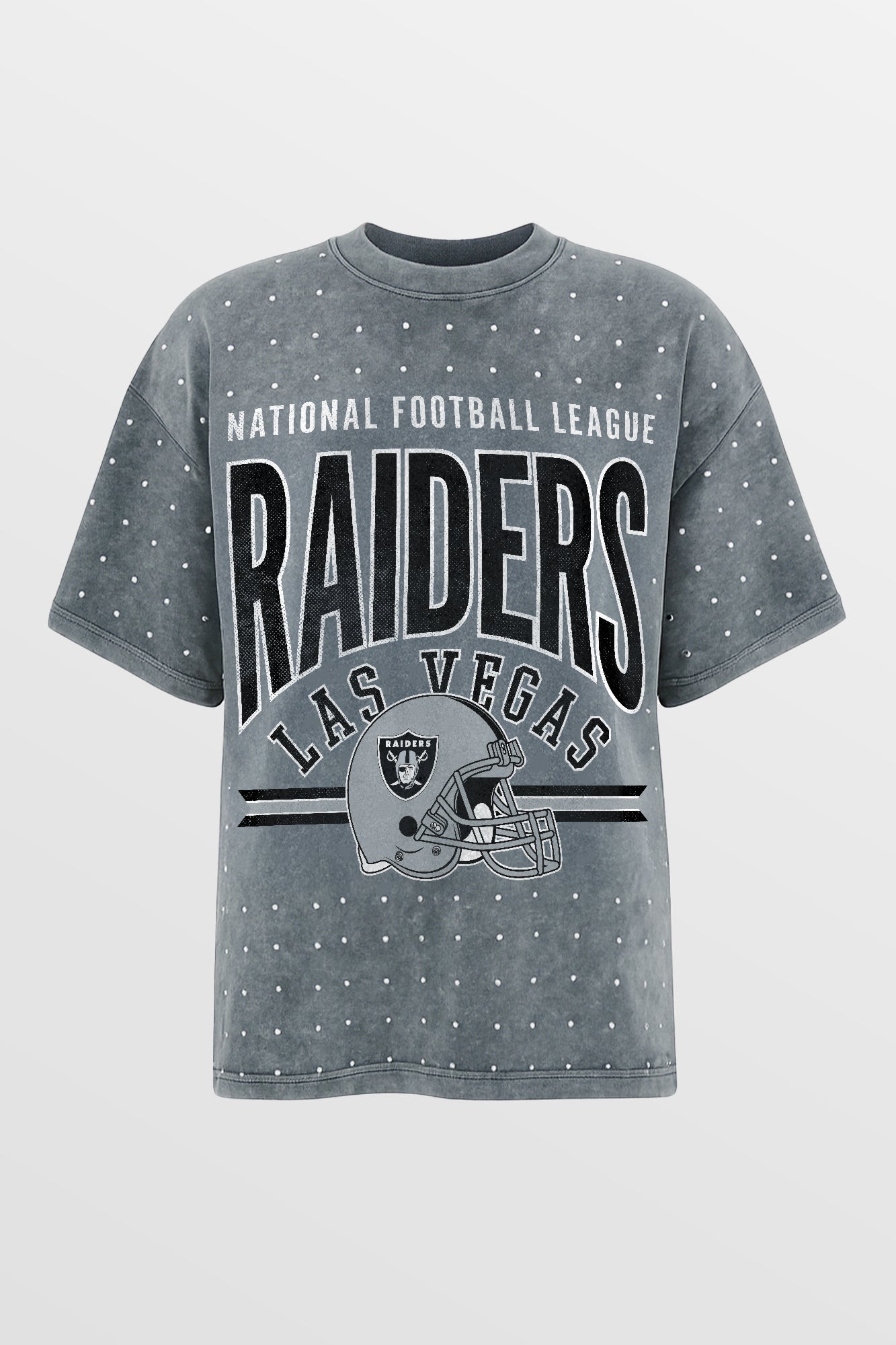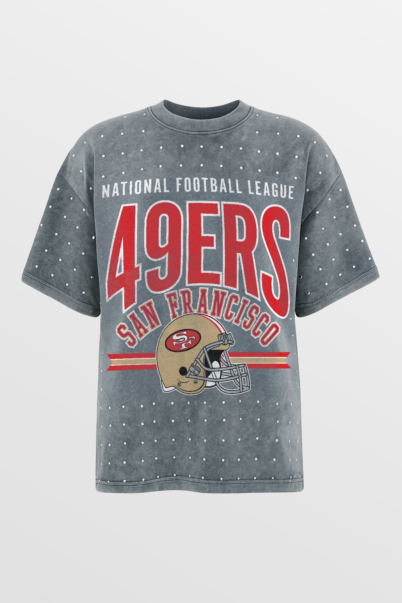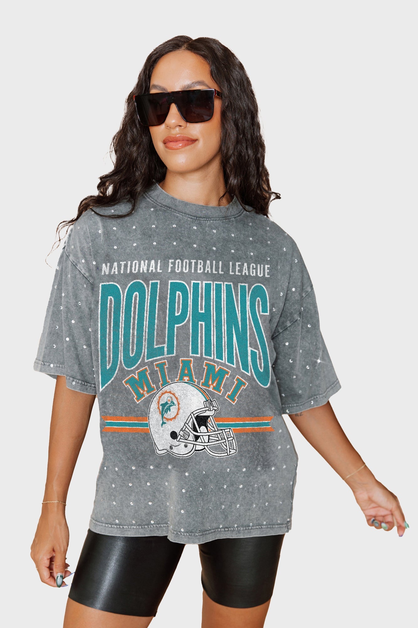 Make a statement in any crowd with our oversized fit, all-over mini rhinestone short sleeve tee featuring a ribbed neckline. Embrace the sparkle while staying comfortable - perfect for every dedicated fan.