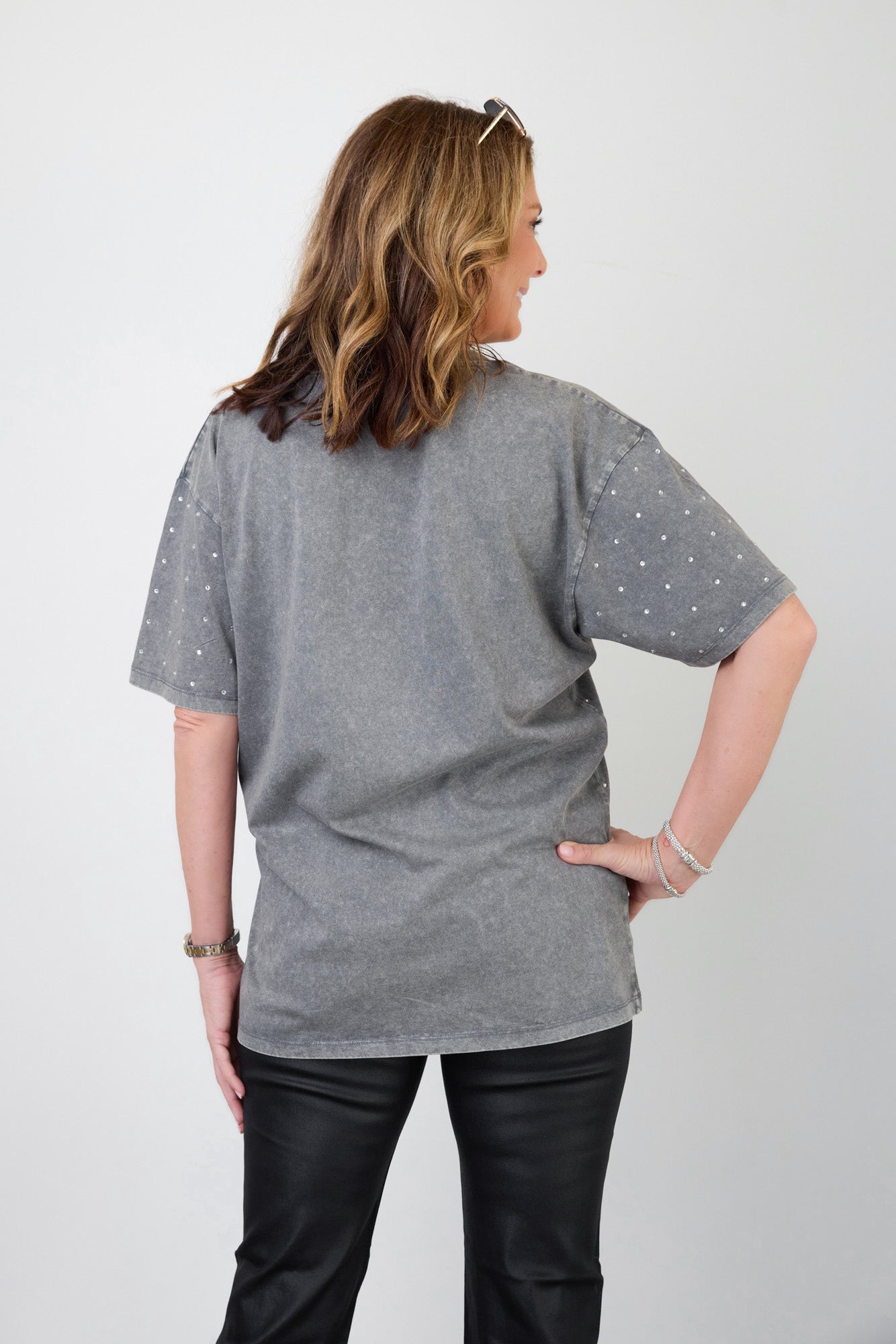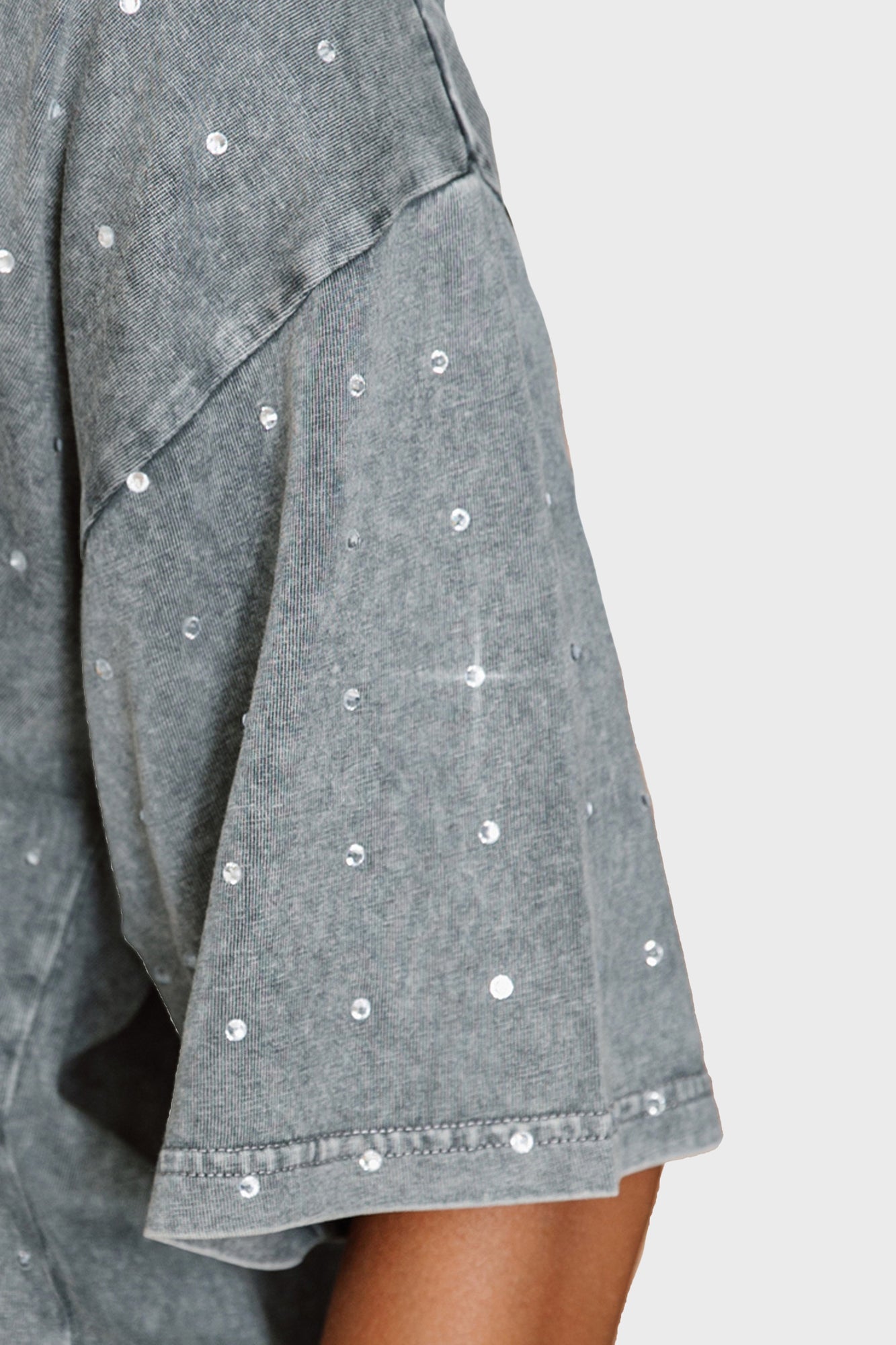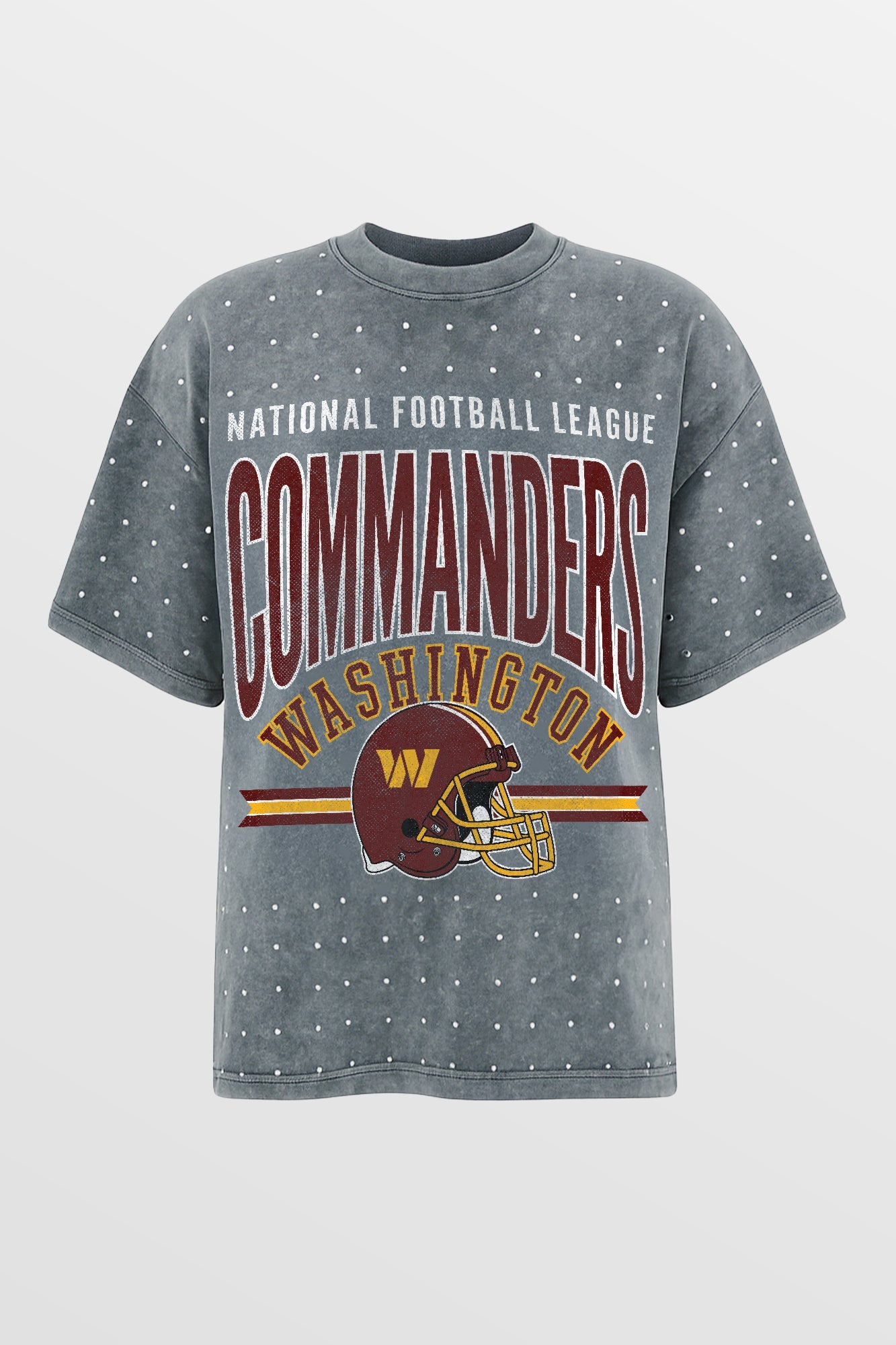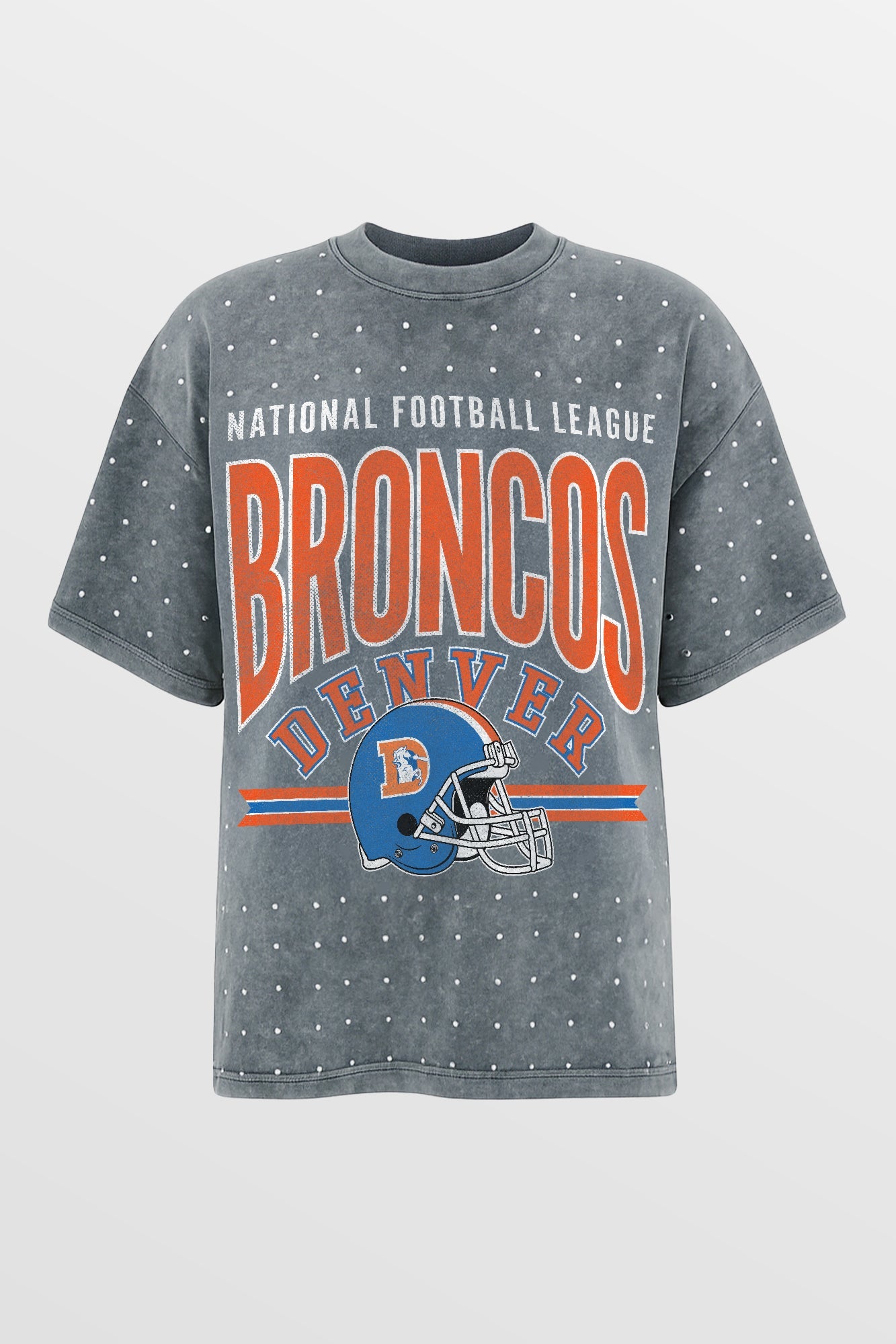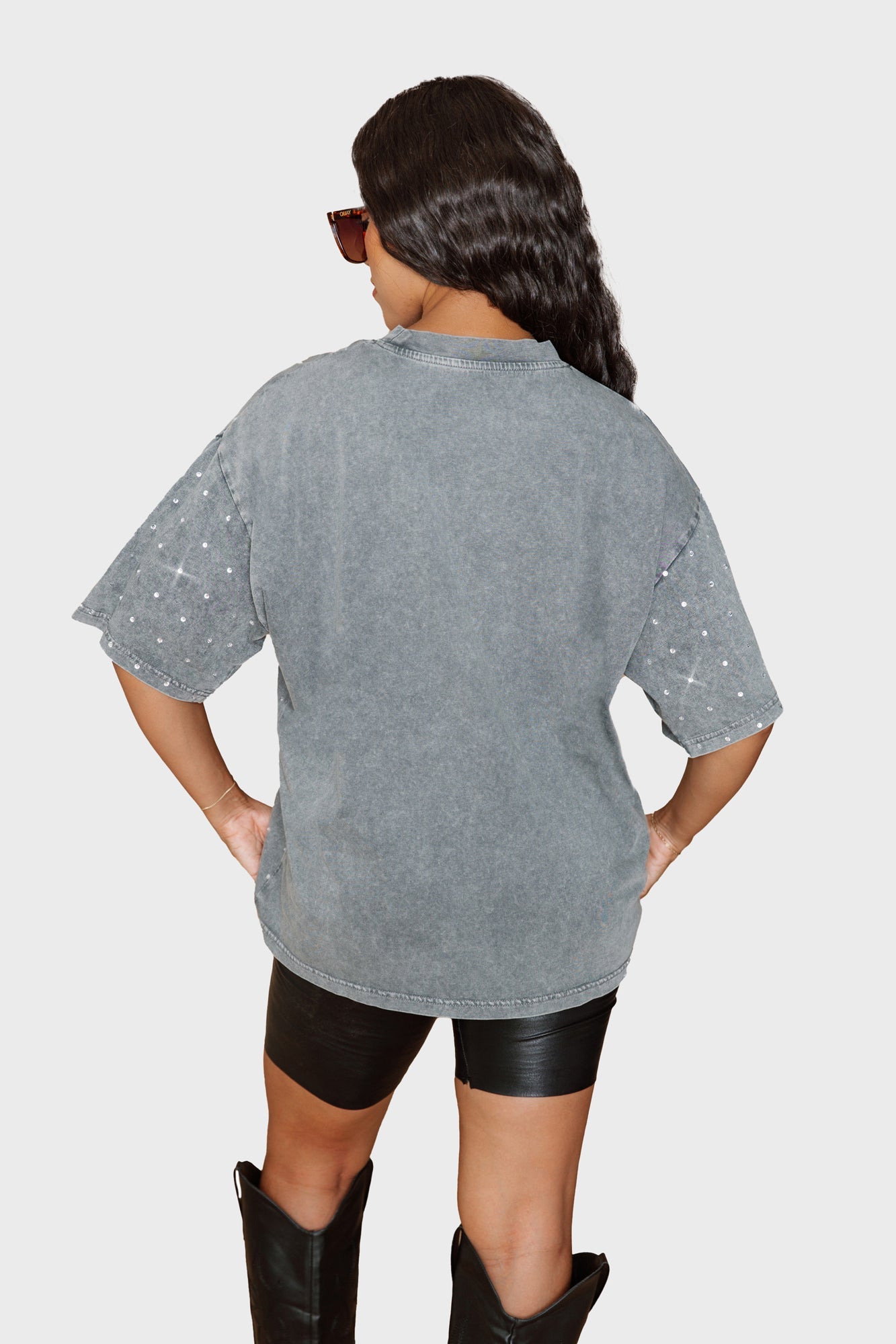 Make a statement in any crowd with our oversized fit, all-over mini rhinestone short sleeve tee featuring a ribbed neckline. Embrace the sparkle while staying comfortable - perfect for every dedicated fan.