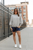 READY FOR ANYTHING STRIPE SWEATER IN GREY