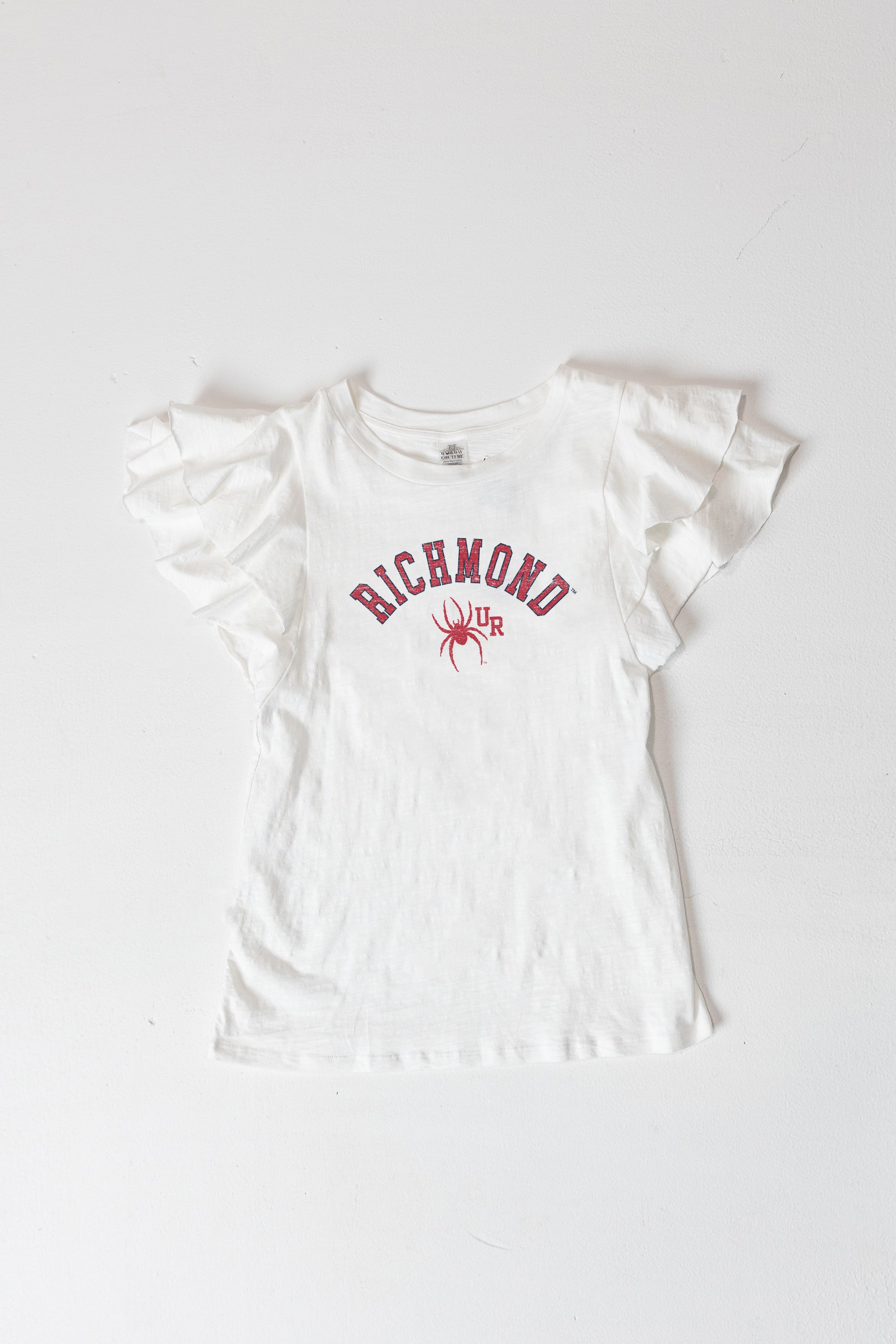 Feel the excitement of game day with our Richmond Spiders flutter sleeve crewneck top. This short sleeve ruffle sleeve slub knit top is a versatile addition to any wardrobe. Perfect for fans who want to look good and feel great.