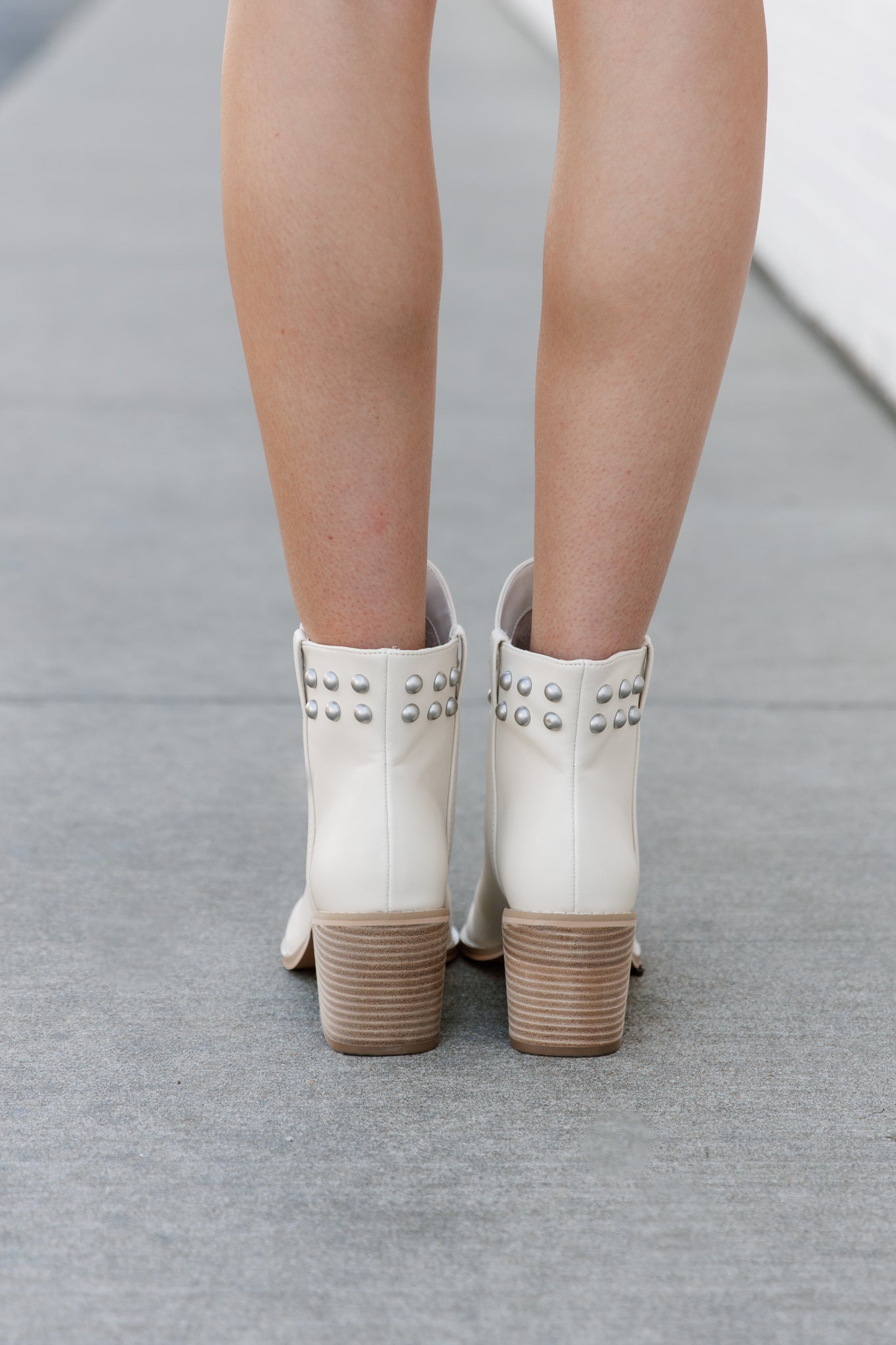 Crafted with ivory leather, these STUDDDED STEPS BOOTS add a touch of edginess to any outfit. The studded detailing on the sides and heels give these boots a unique and stylish look. With a sturdy sole and comfortable fit, these boots will keep you walking in style all day long.
