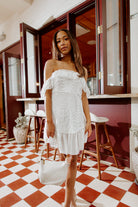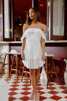 WILLOW PLEATED OFF THE SHOULDER MINI DRESS