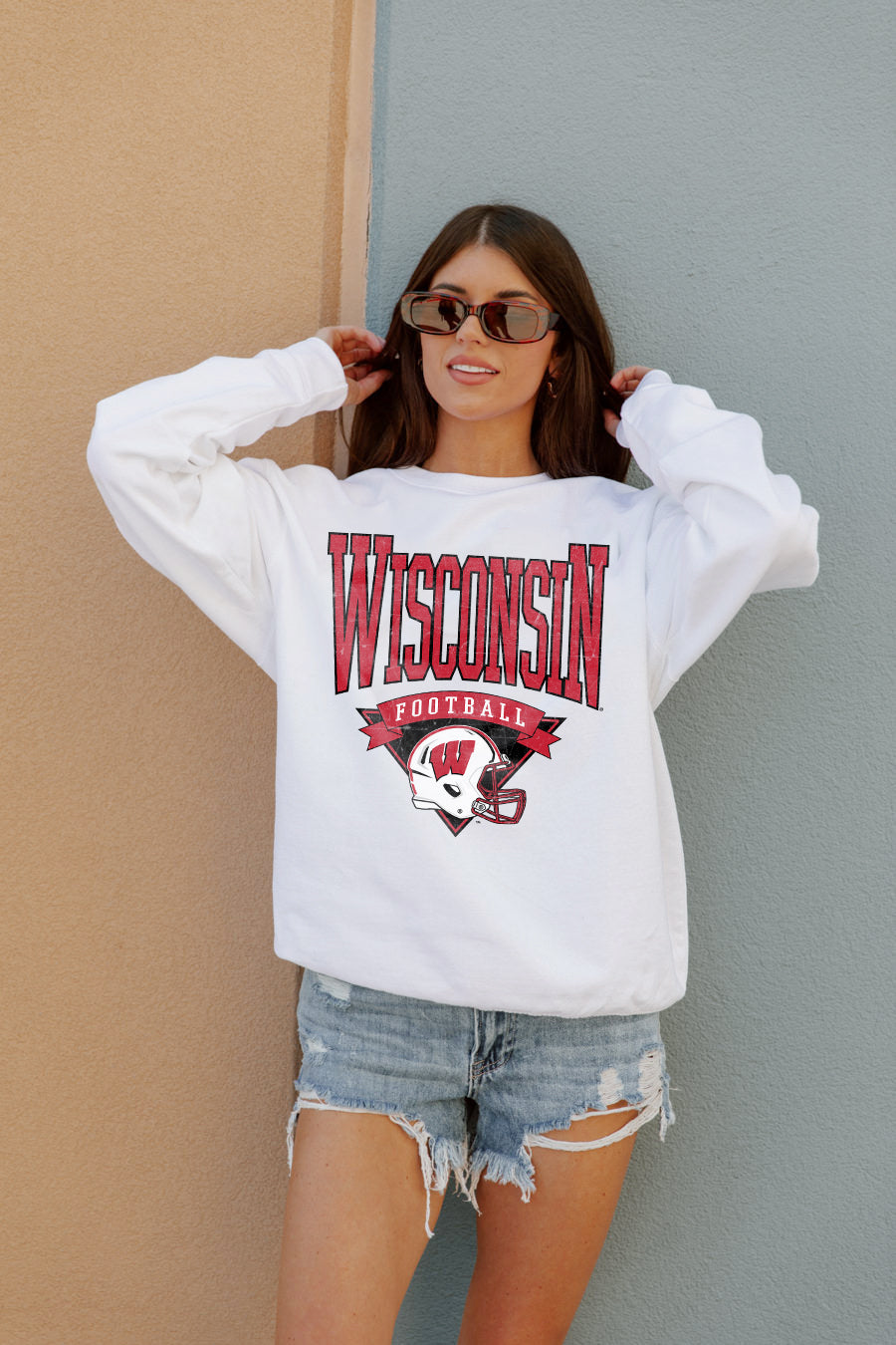 WISCONSIN BADGERS Slow Motion Crew Fleece Pullover By Madi Prewett Troutt